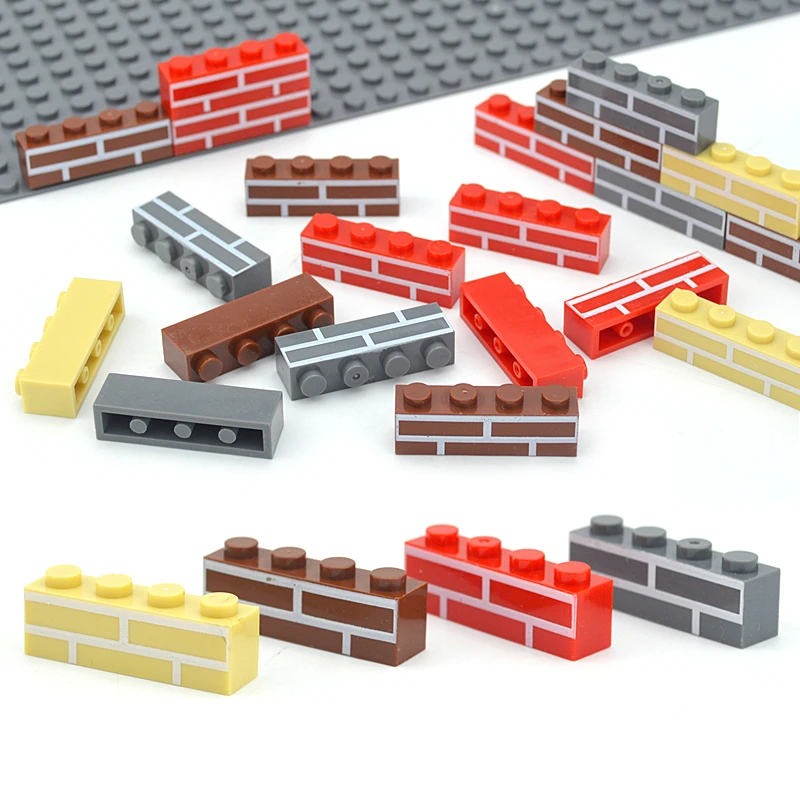 62-64 шт. стены кирпича толщиной 1*4 L горошек DIY строительные блоки город МОС аксессуары двери оконный строительный Толстая кирпичная стена