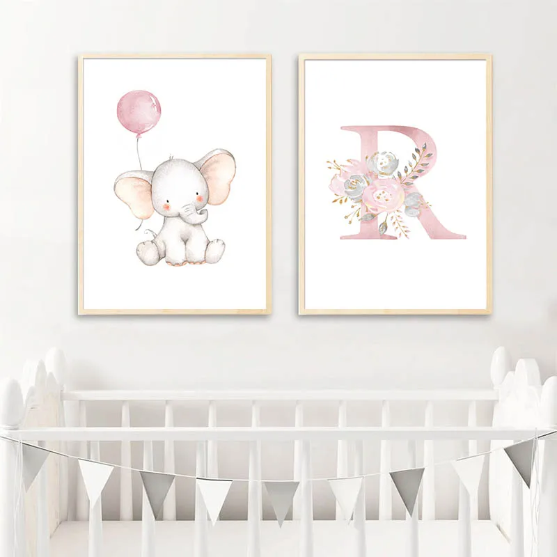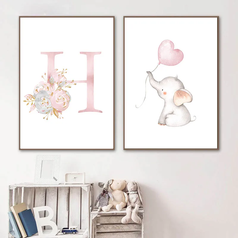 Персонализированные с цветочным и буквенным принтом; Постер для дет...