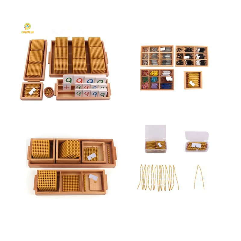 Учебное оборудование Монтессори, материалы с золотыми бусинами, опи...