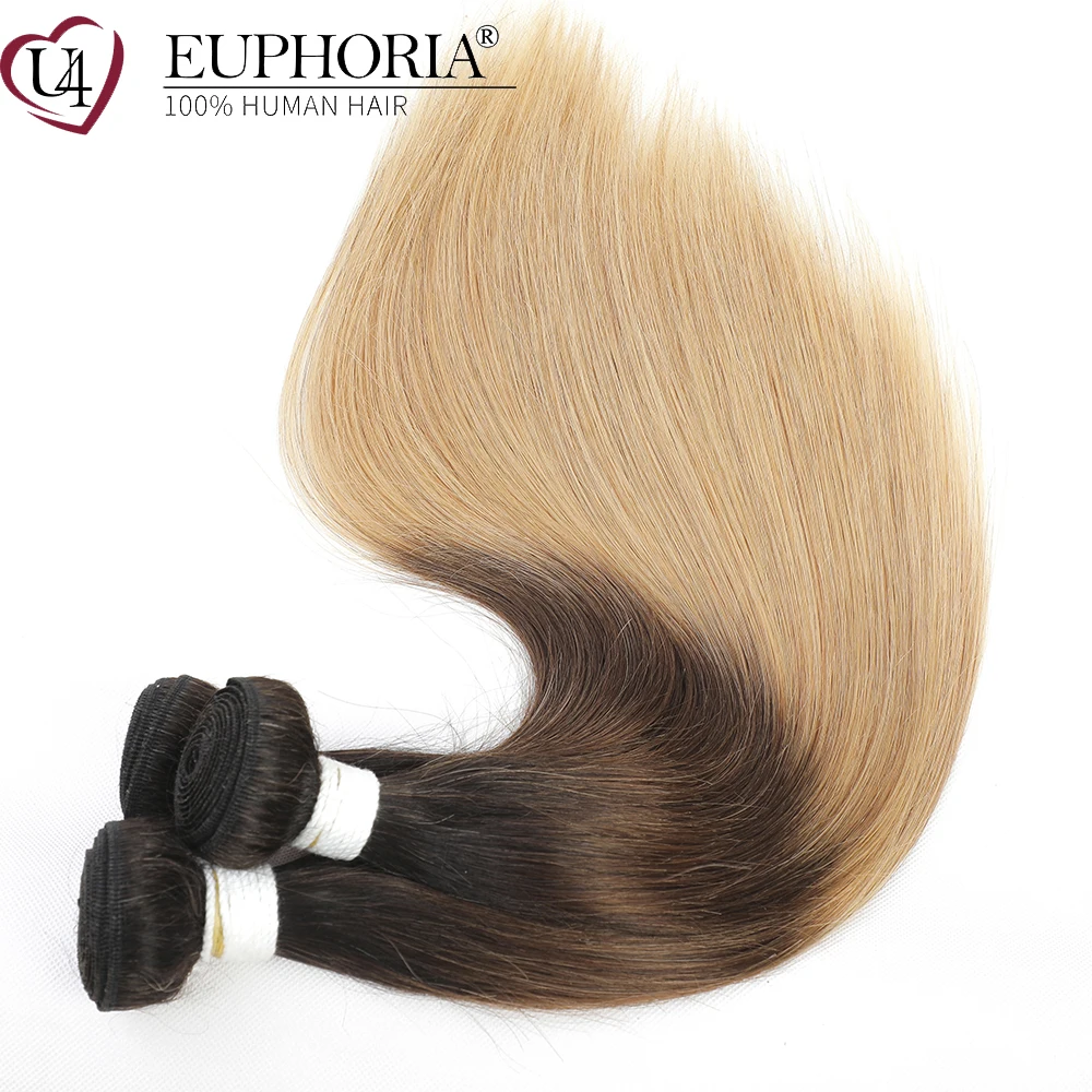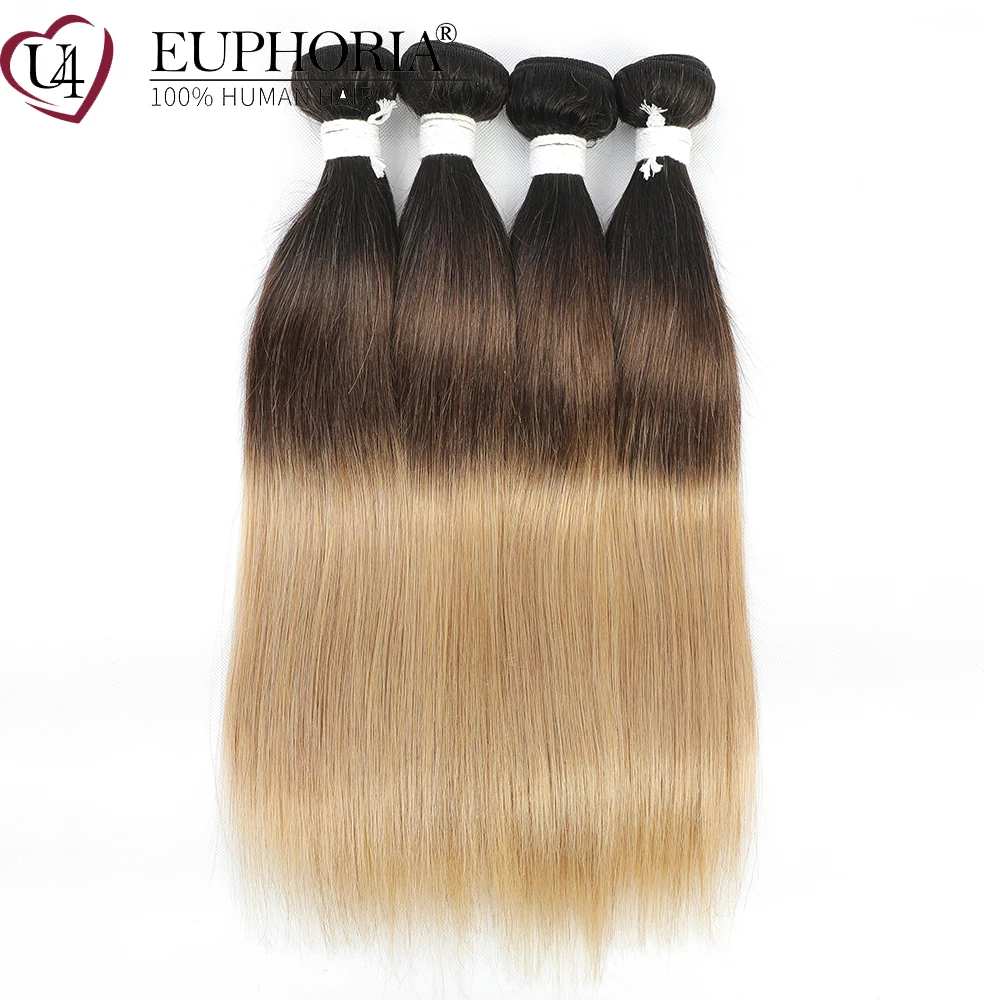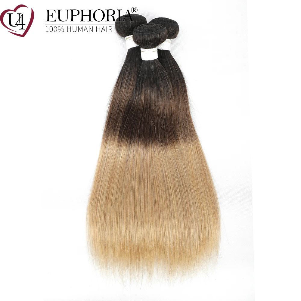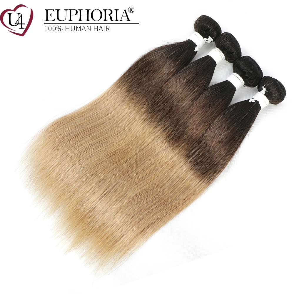 Эффектом деграде (переход от темного к-каштановые прямые волосы 3 пучки волос бразильский Реми 100% человеческие волосы пучки Дело эффектом деграде (переход от темного к красный светлые волосы плетения наращивание EUPHORIA