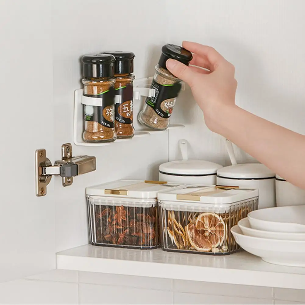 Держатель для банок для специй, самоклеящаяся конструкция с пряжкой, стеллаж для хранения ПП бутылок для приправ, настенный стеллаж для кухни