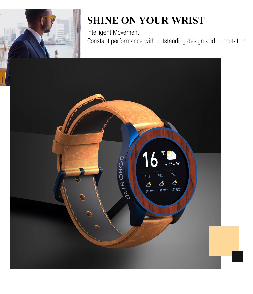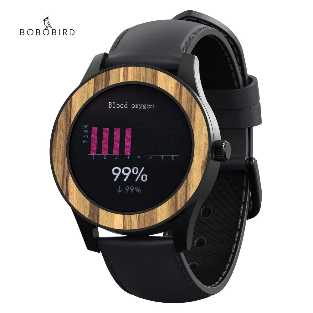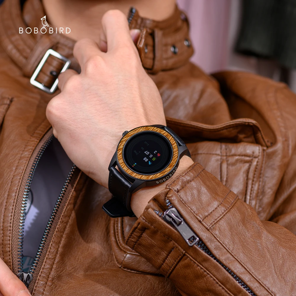 Мужские умные часы BOBO BIRD, деревянные многофункциональные умные часы, спортивные наручные часы с пульсометром и Bluetooth, 5,0