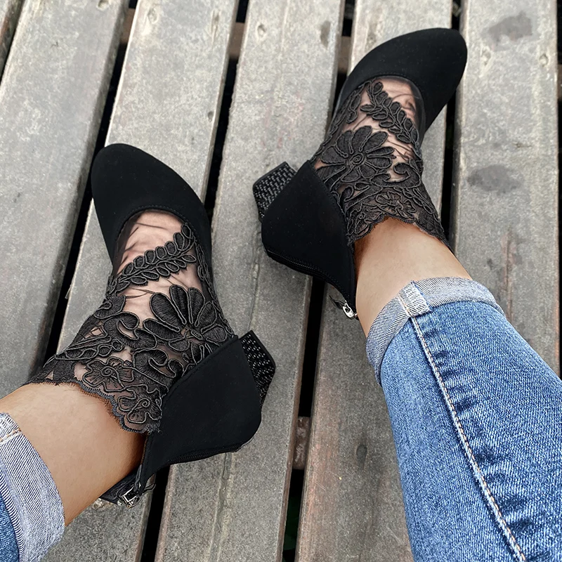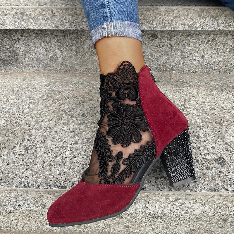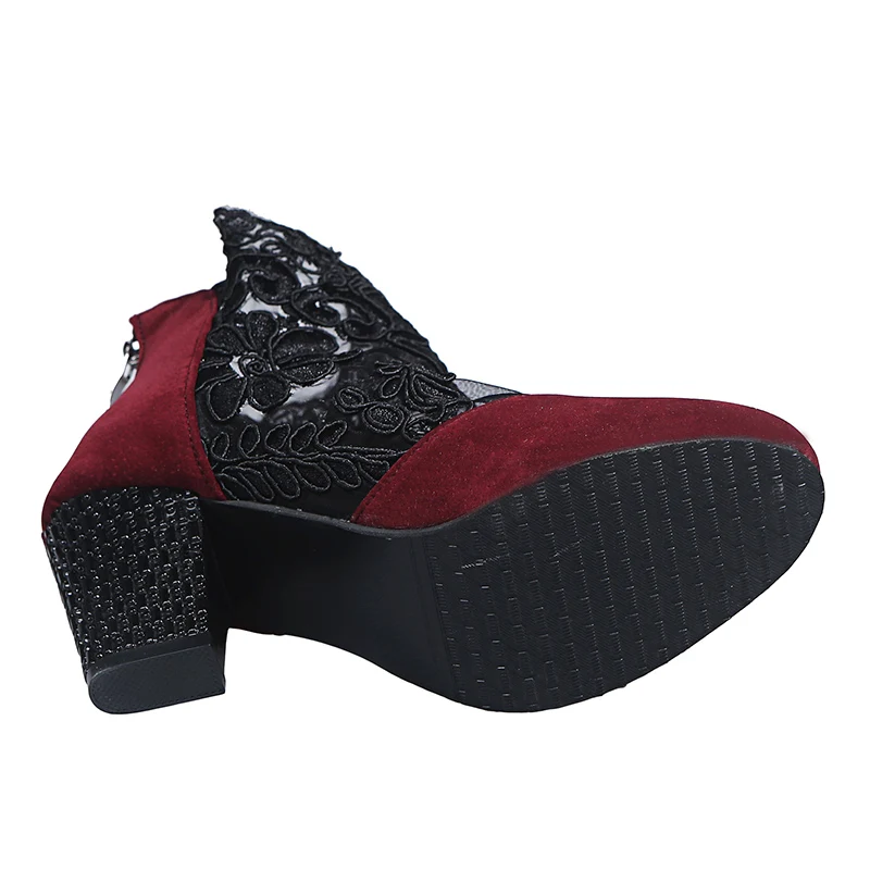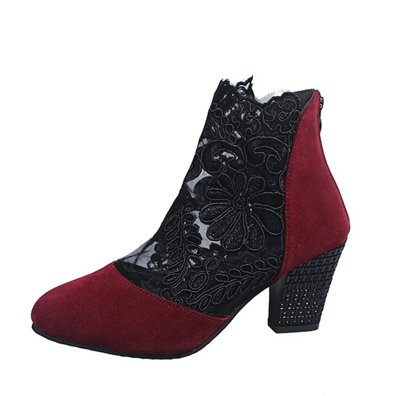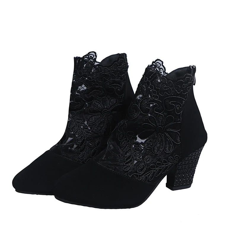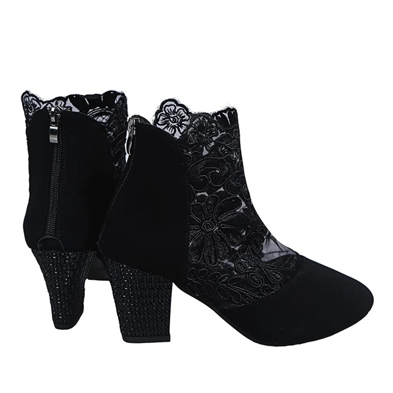 Женские ботильоны с вышивкой Rimocy, летние, дышащие, сетчатые, со стразами, на высоком каблуке, большие размеры 43