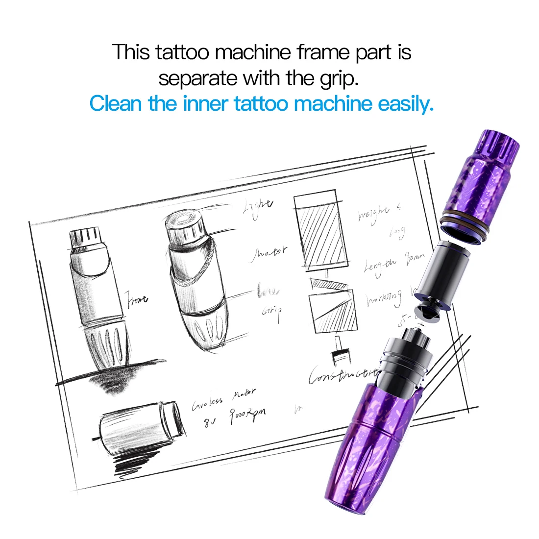 Спецификация: 1. Подходит для игл для перманентного макияжа, бровей, татуировок для тела; 2. Скорость: 8 в/9000 об/мин 3. Интерфейс RCA имеет высокую проводимость 4. Рабочее напряжение: 5-8 В постоянного тока 5. Размер: 25*86 мм 6. Вес: 82 г Особенность: 1. Автоклавируемая тату-машинка. 2. Эта рамка для тату-машинки отдельно от ручки. Легко очистите внутреннюю тату-машинку. 3. Уникальная и инновационная сборка двигателя продлевает срок службы машины 4. Самая маленькая тату-машинка-легко контролировать.