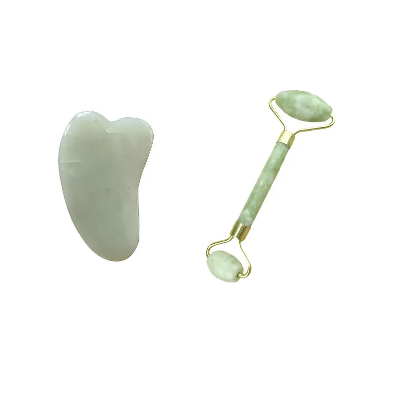 Набор инструментов для гуаша и массажа, зеленый скребок из натурального нефрита с камнями для лица, шеи, спины и челюсти, 2 в 1