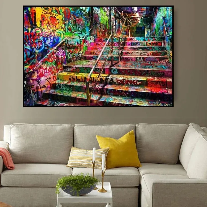 Художественный плакат на холсте в стиле граффити, домашняя живопись...