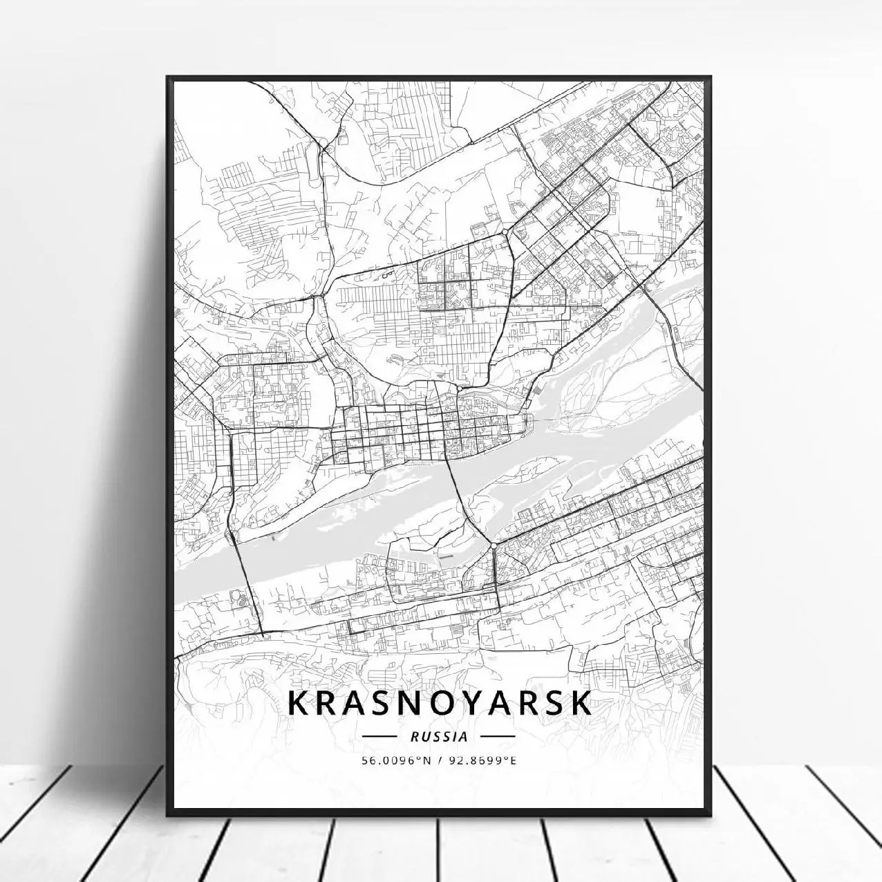 Черно-белый холщовый постер с принтом карты города стальбум, Соврем...