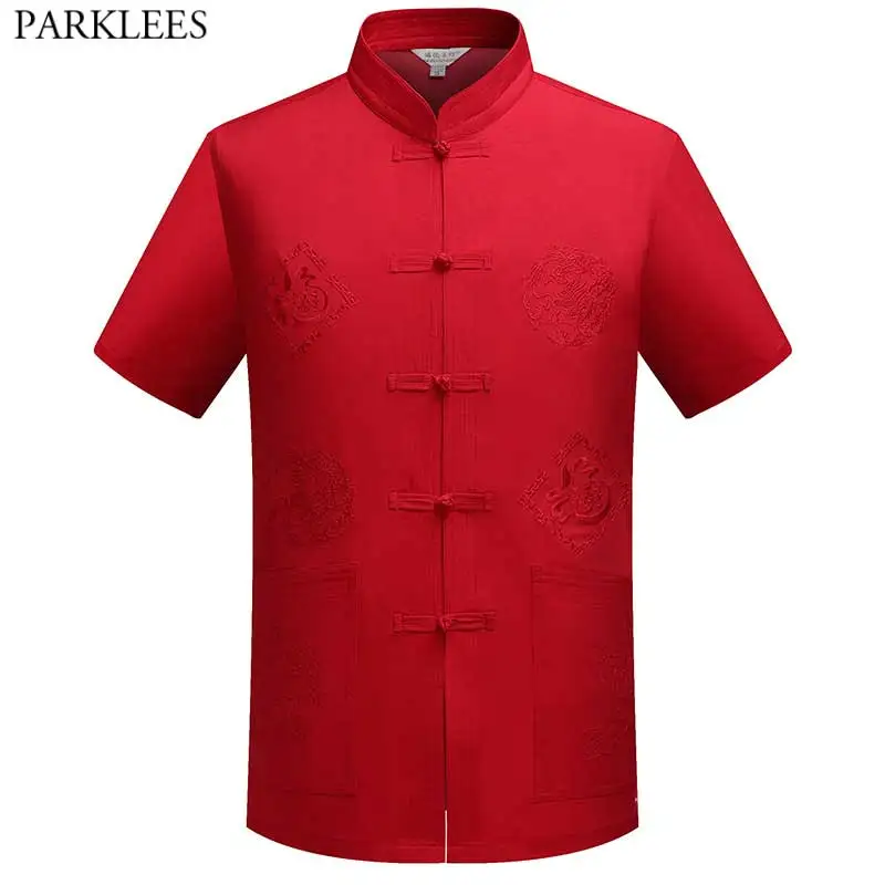 Красная традиционная рубашка в китайском стиле, Мужская льняная рубашка с воротником Мандарин и пуговицами-лягушками, мужская одежда в стиле тай-чи Вин Чун кунг-фу