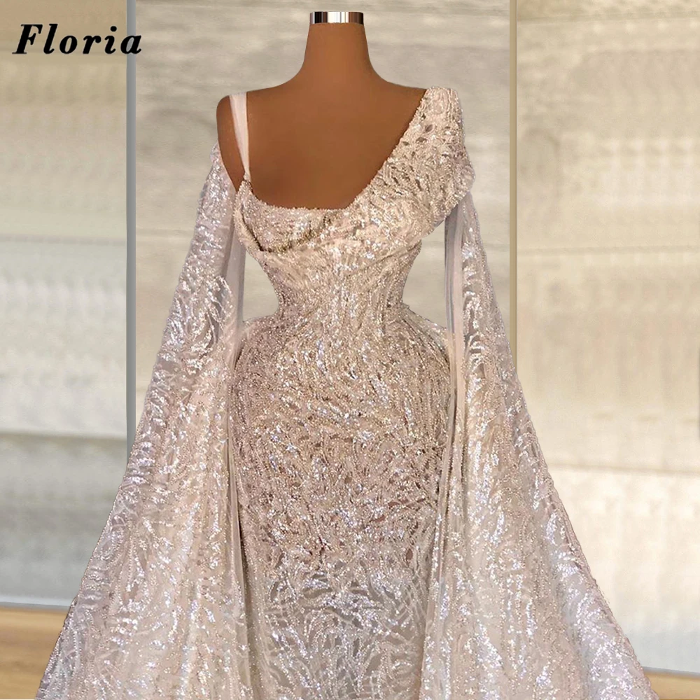 Женское свадебное платье с жемчужинами, мусульманское кружевное платье невесты, платье-Русалка со шлейфом для свадьбы в саудовском, арабском стиле, 2021