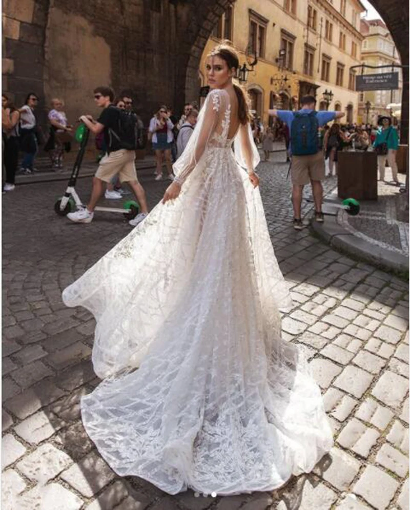 Винтажные кружевные свадебные платья с длинным рукавом, свадебное п...