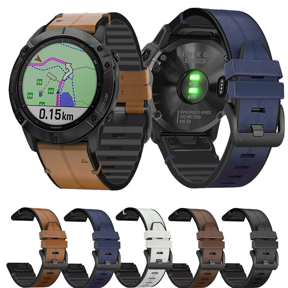 Ремешок для часов Garmin Fenix 6 Pro, Sapphire 5 Plus, быстросъемный ремешок из натуральной кожи и силиконовый ремешок для часов