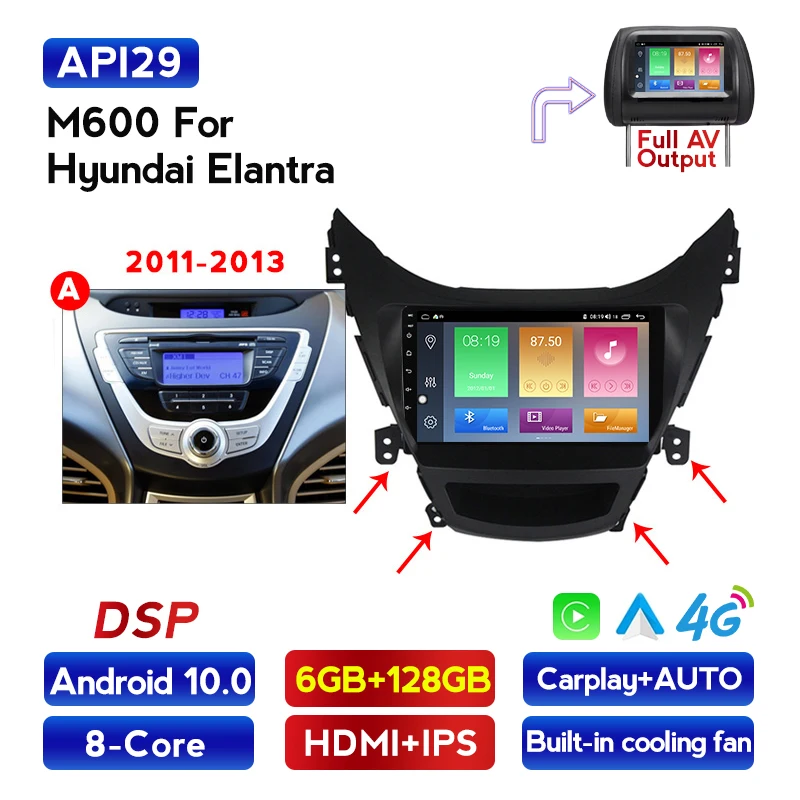 Автомобильный мультимедийный DVD-плеер, 6 ГБ + 128 Гб, Android 10 для Hyundai ELANTRA Avante 2011, 2012, 2013, 2014, 2016, 2015, Wi-Fi, 4G, lte, Carplay