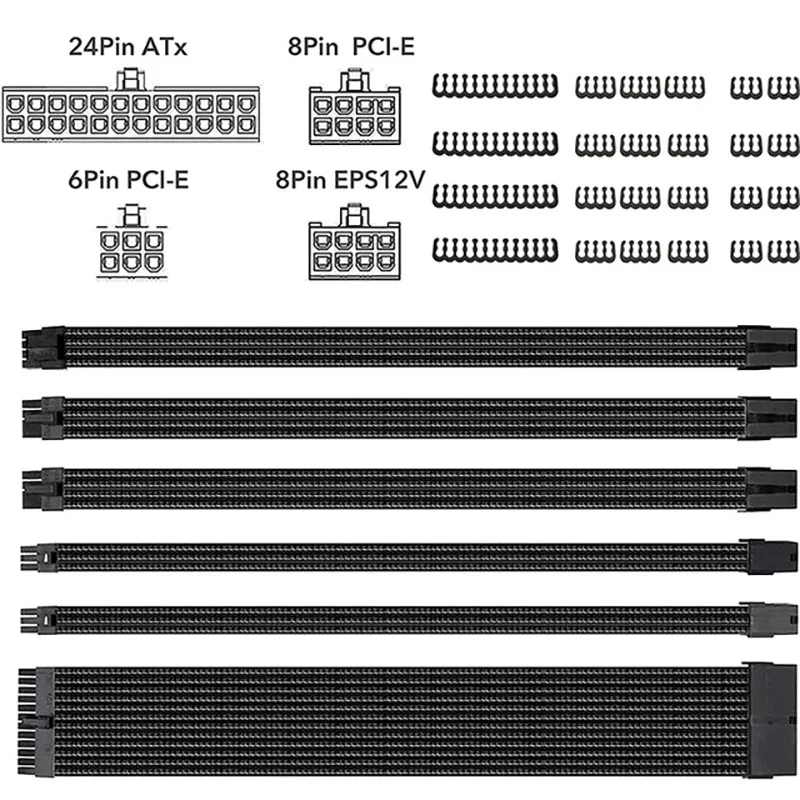 Посылка входит:1 x 24-контактный Удлинительный кабель A-TX1x4 + 4-контактный Удлинительный кабель EPS2 x 8-контактный Удлинительный кабель PCI-E2 x 6-контактный Удлинительный кабель PCI-EКабельный гребень 24-Pin x 4, 8-Pin x 12, 6-Pinx8