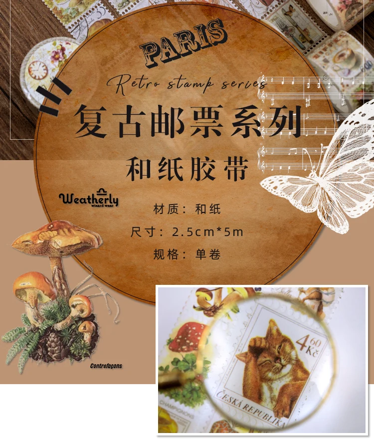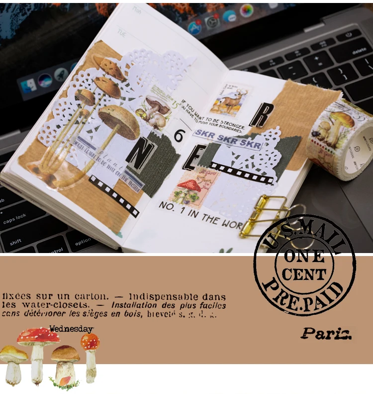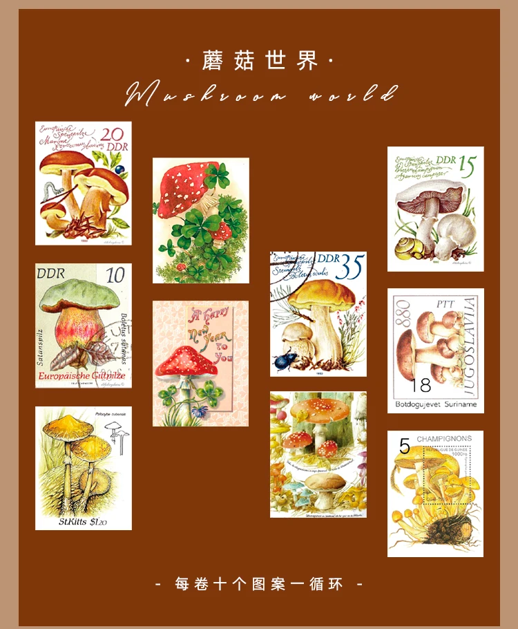 Ретро штамп серии Philately Bullet Journal васи лента растение гриб...