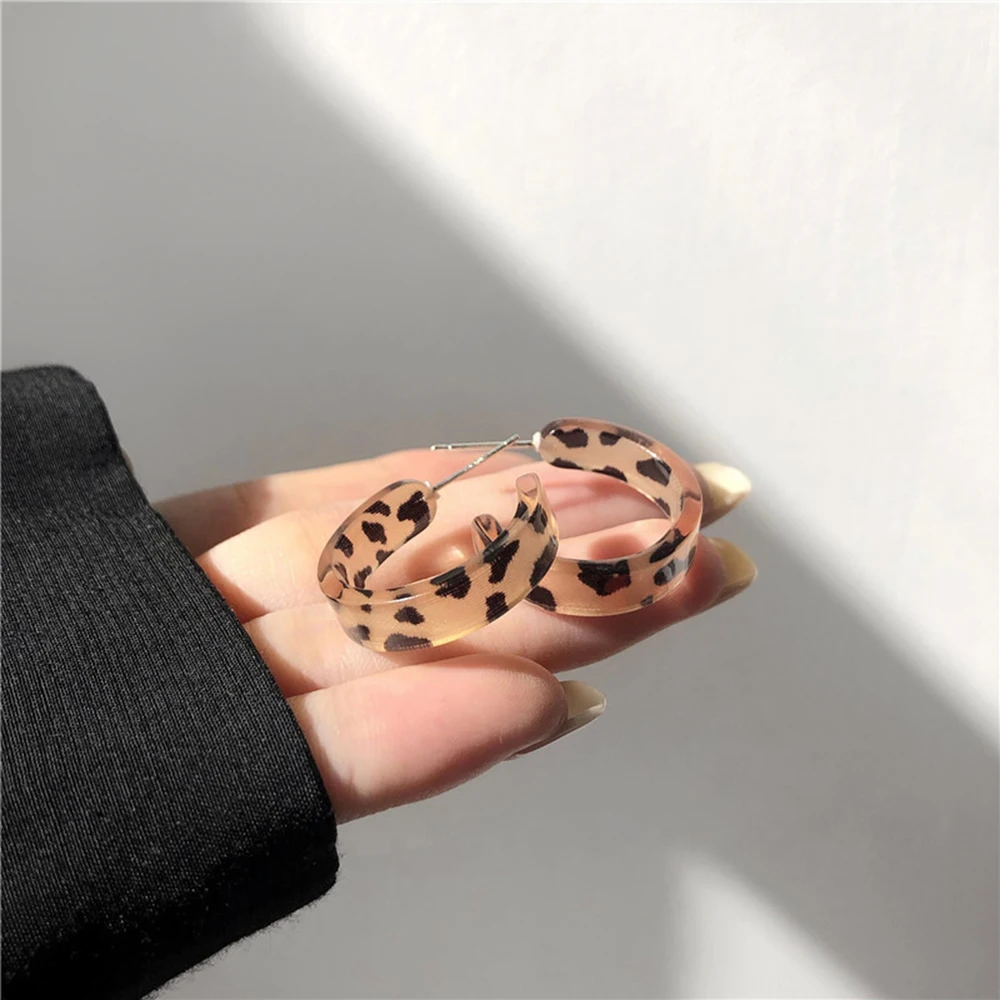 Женские акриловые серьги-кольца с леопардовым принтом, в Корейском ...