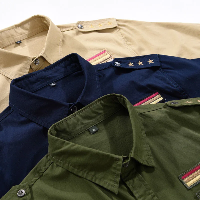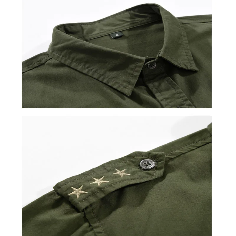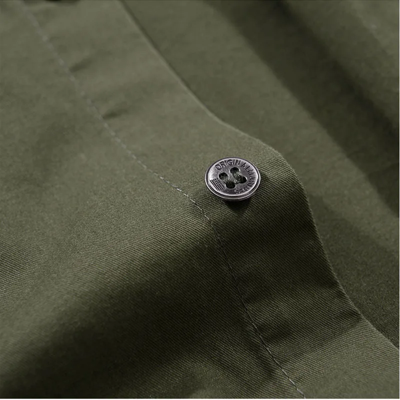 Мужская хлопковая рубашка с коротким рукавом, в стиле милитари