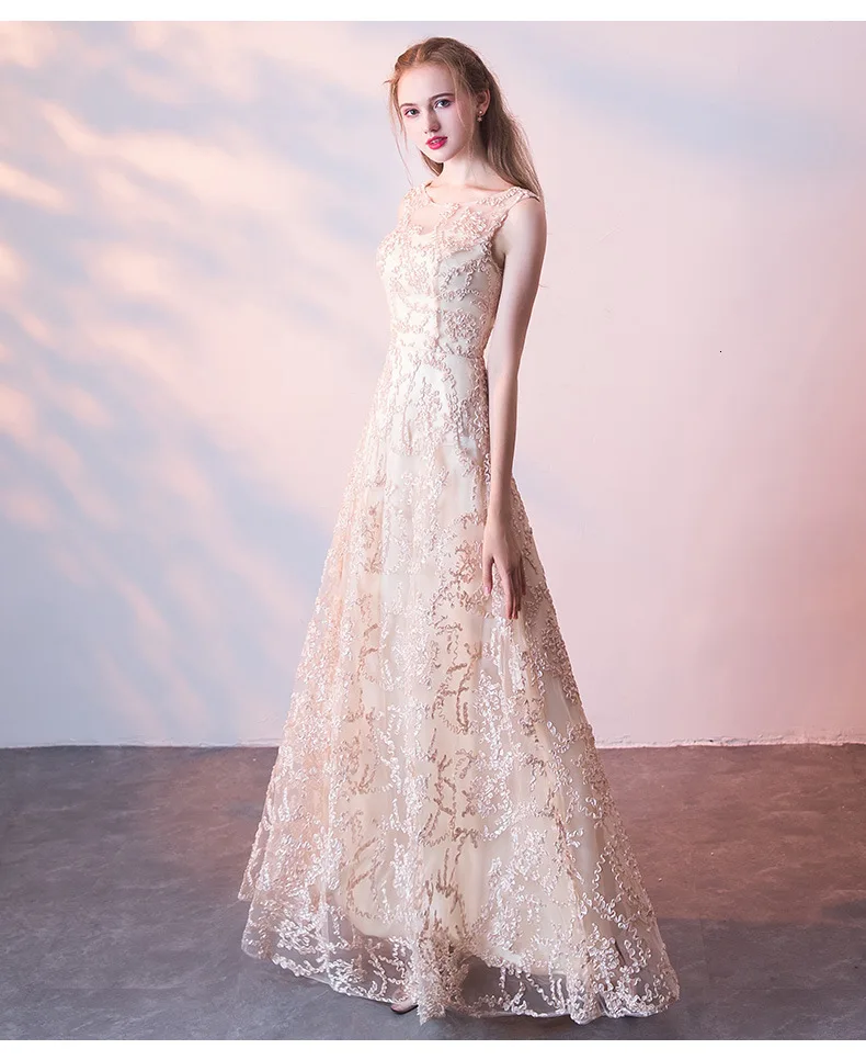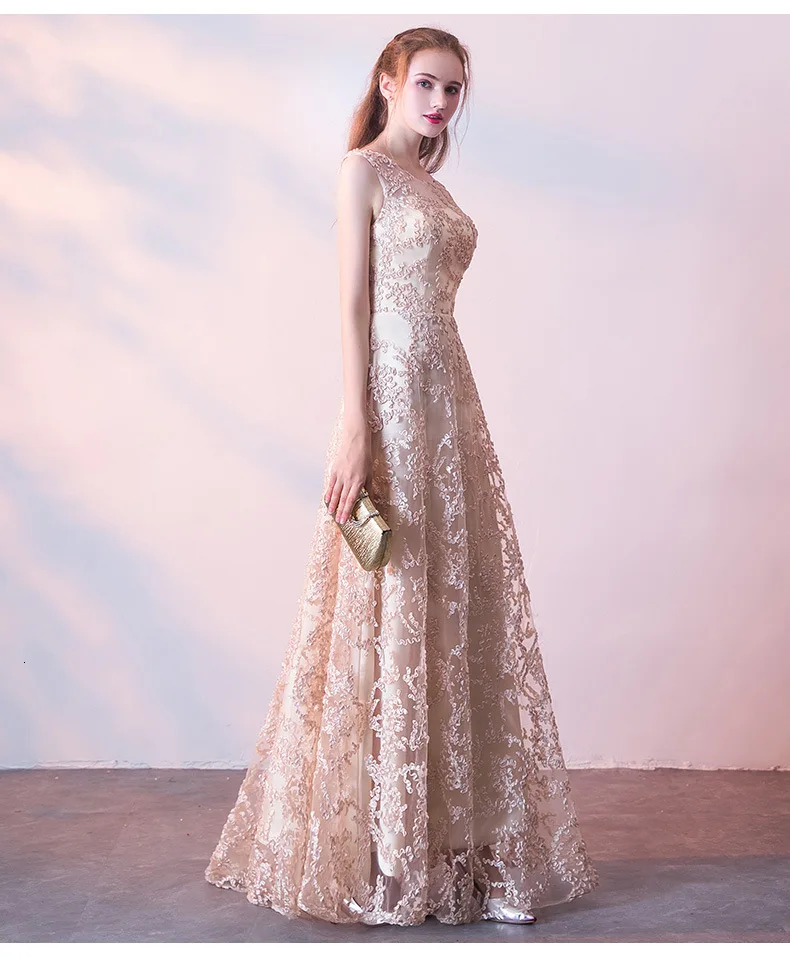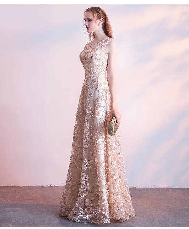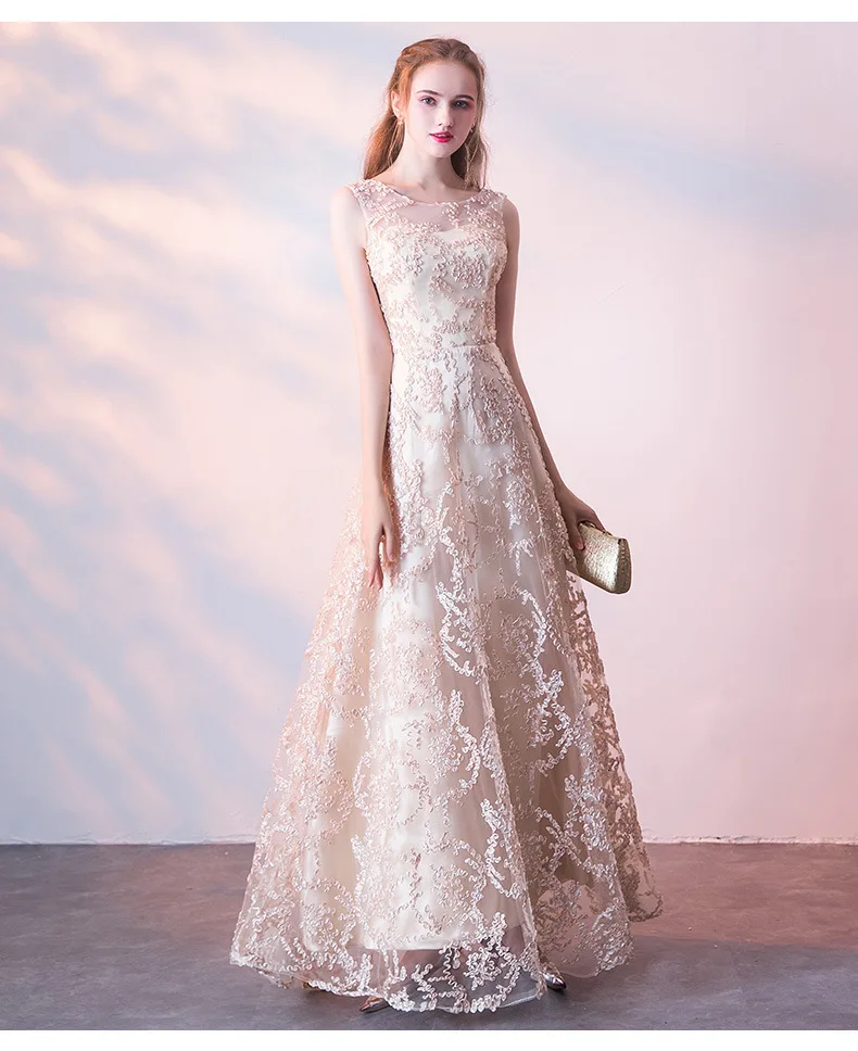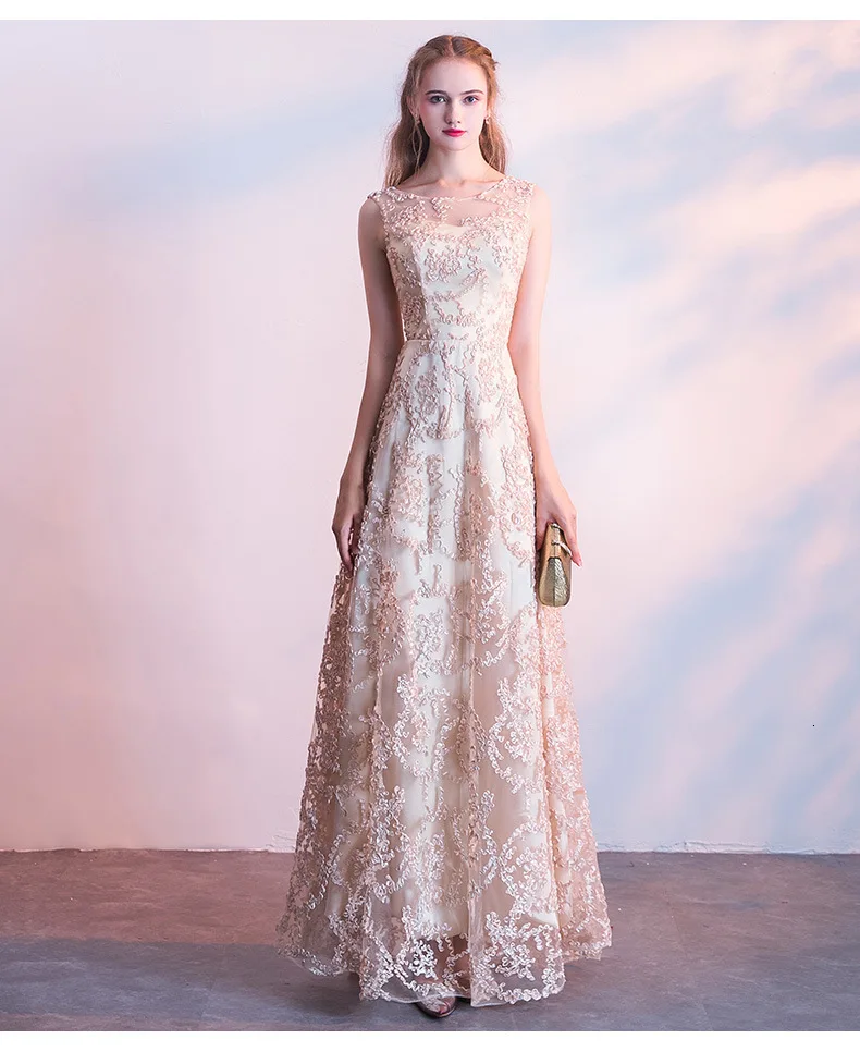 Вечерние платья, элегантное платье с высоким воротником и аппликацией, вечернее платье до пола, простое кружевное формальное платье А-силуэта на молнии сзади