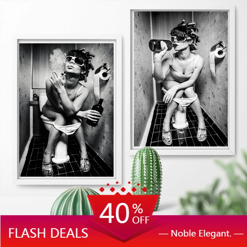 Модный Туалет сексуальная женщина Рождественский холст печать современный бар девушка курить и пить в комнате отдыха живопись аниме постер pictu