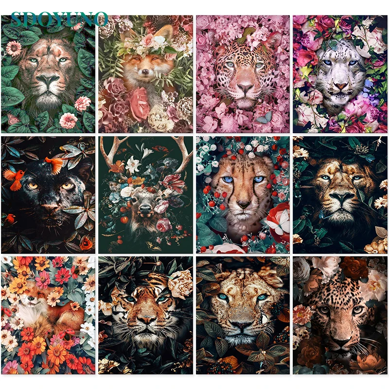 SDOYUNO масляная краска по номерам олень 60x75 см DIY Краска по номерам для взрослых животных Безрамная Краска на холсте уникальный подарок