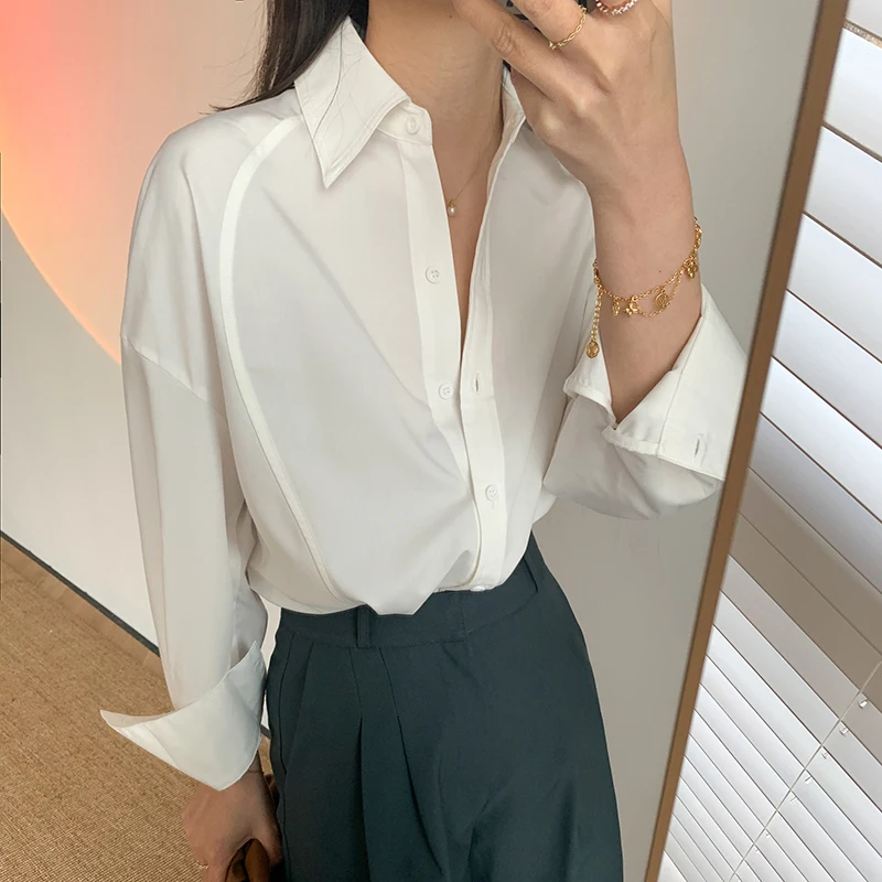 Рубашка женская с длинным рукавом, Модная белая Повседневная Блузка в Корейском стиле, топ, 2021