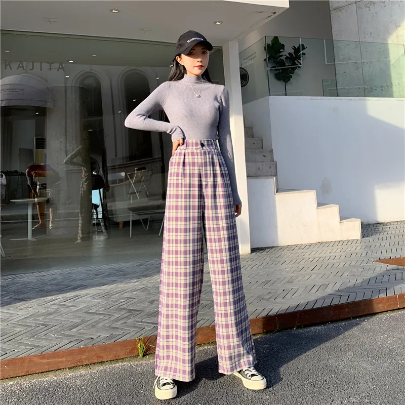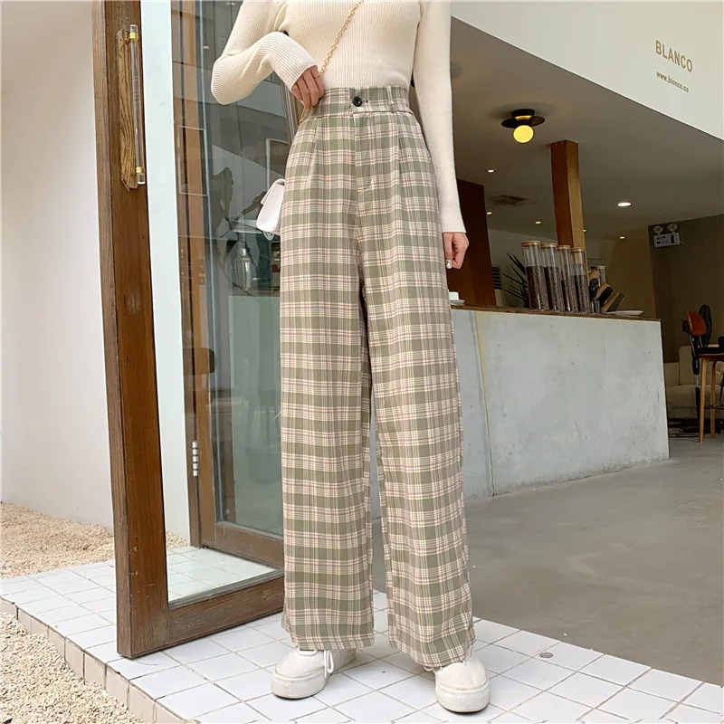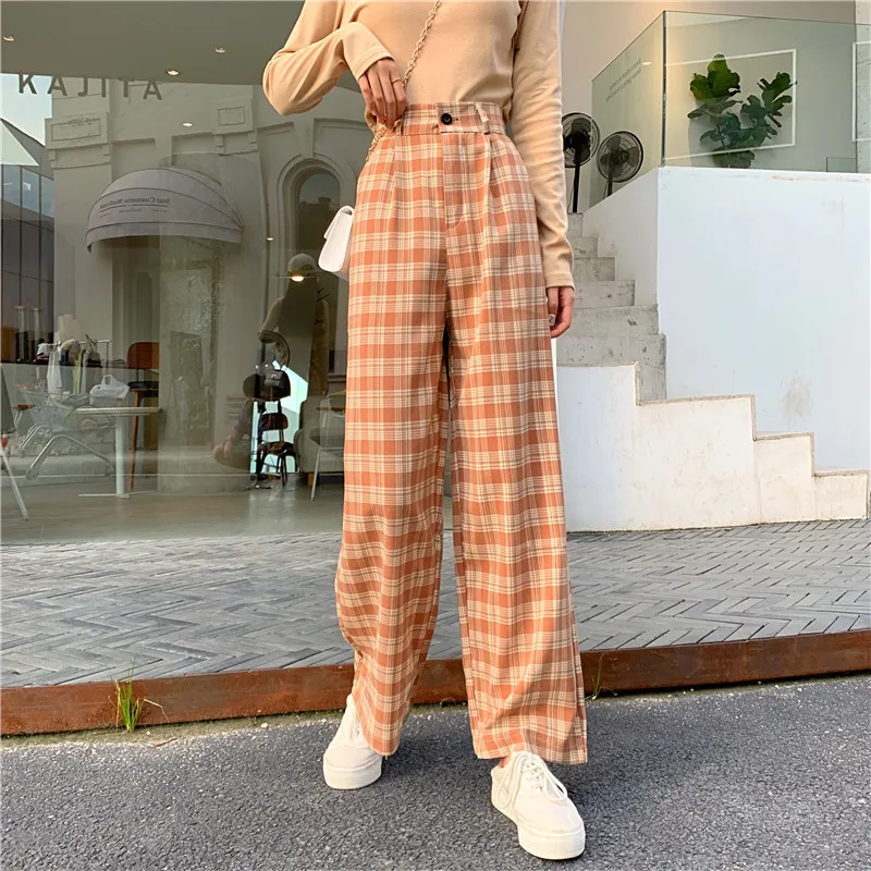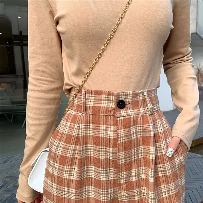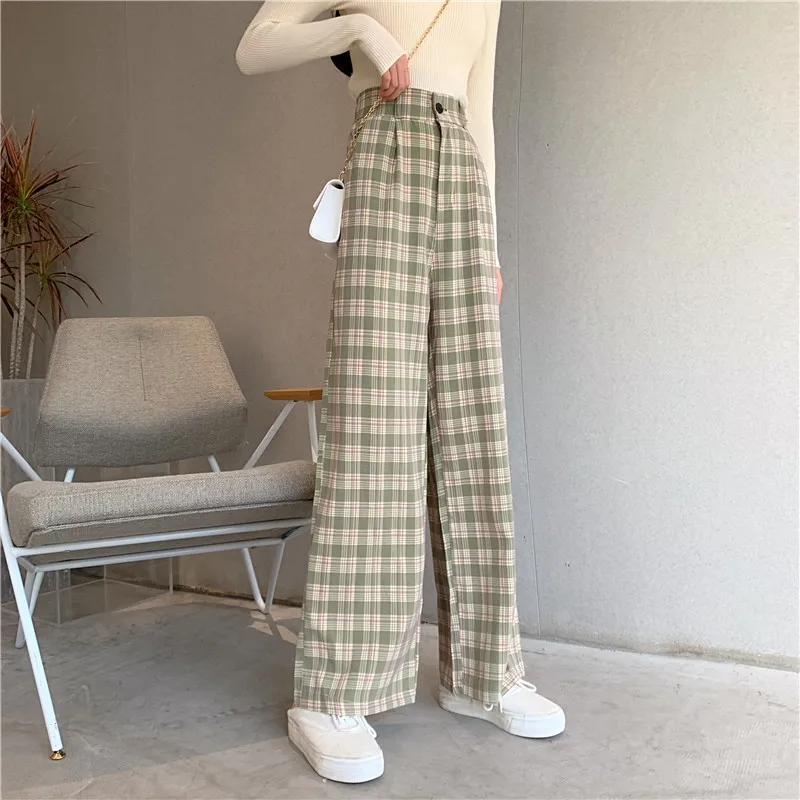 6 цветов Новые простые винтажные клетчатые брюки повседневные длинн...