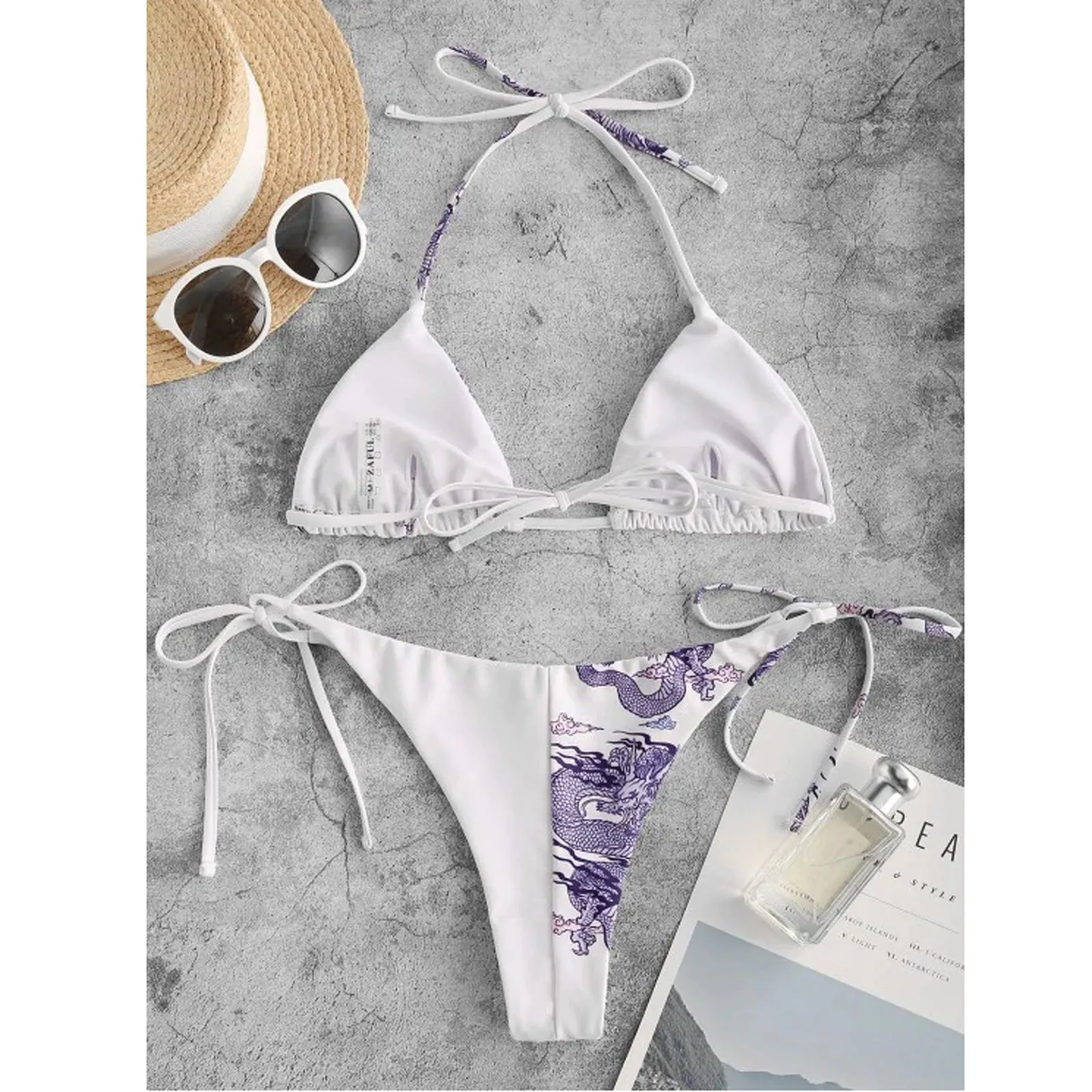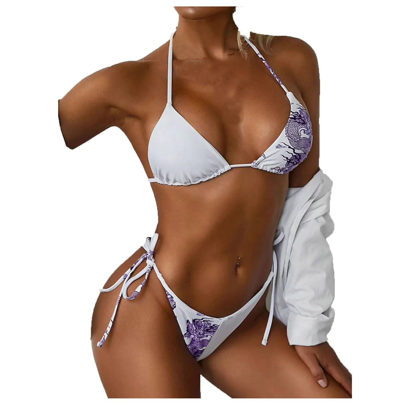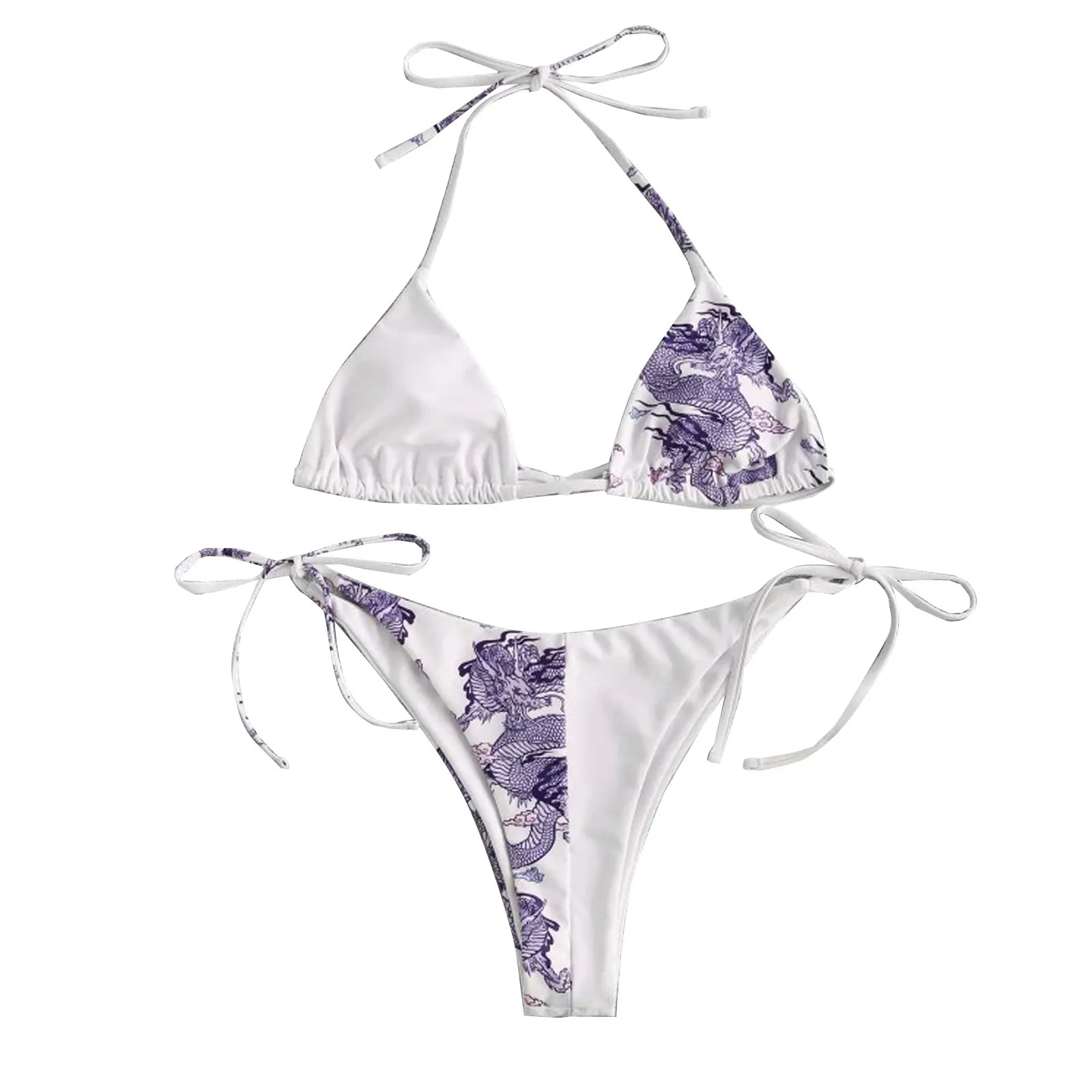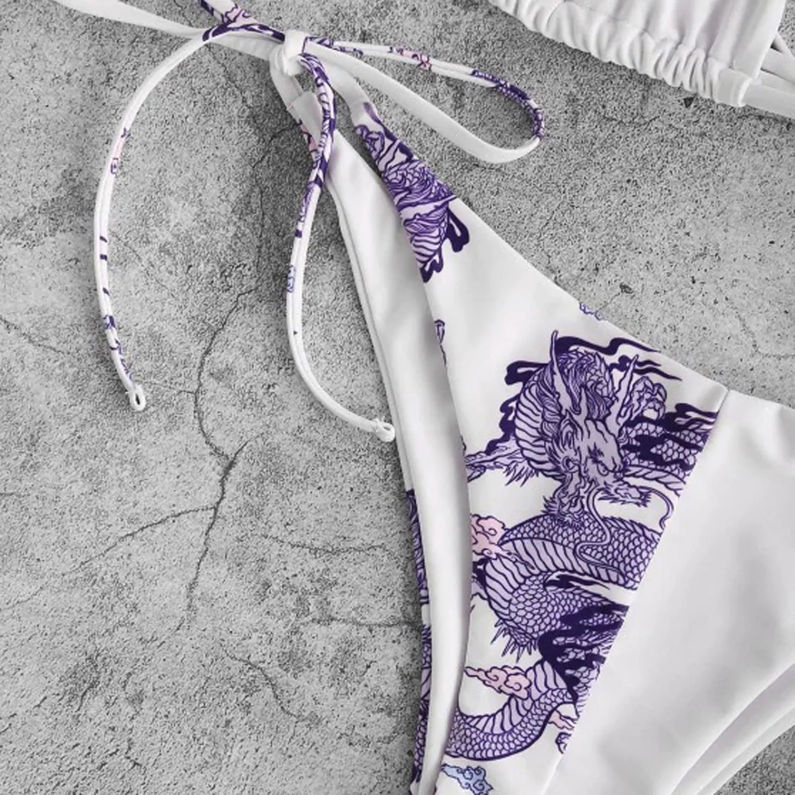 Бикини женское с принтом дракона, пикантный белый бюстгальтер и тон...