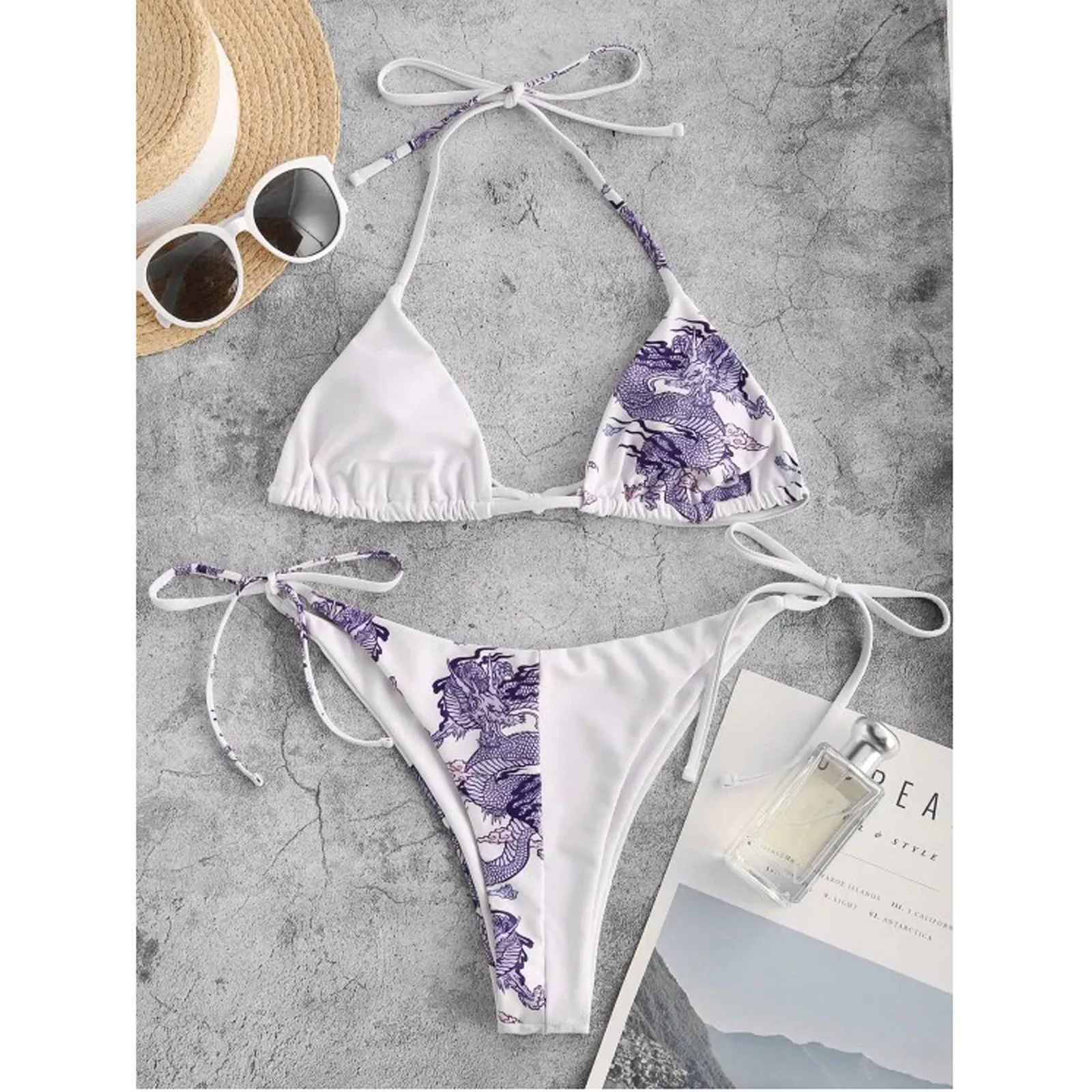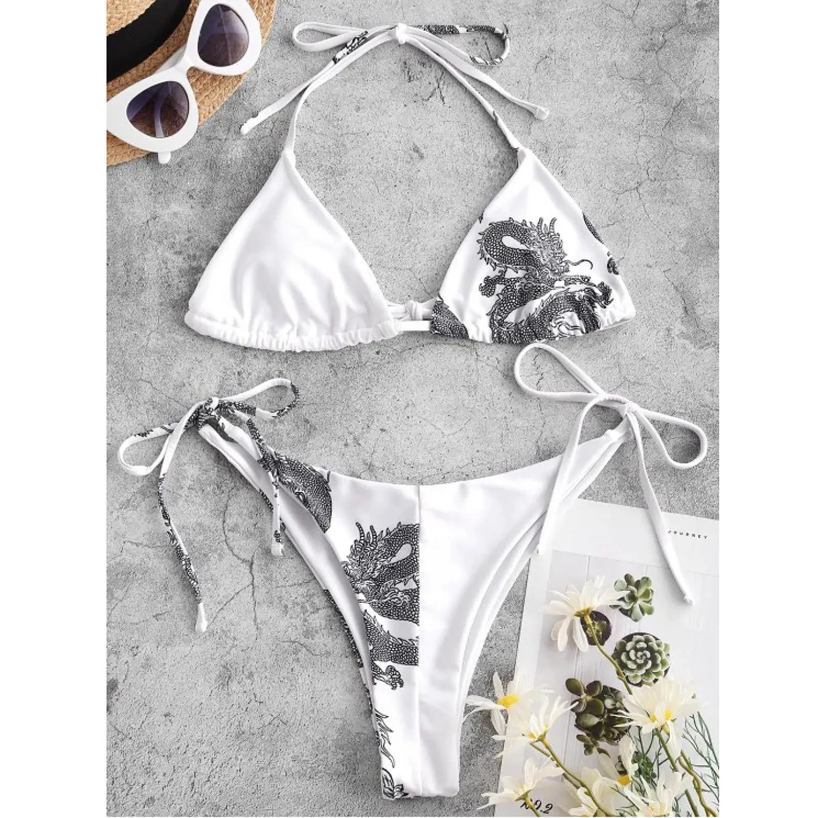Бикини женское с принтом дракона, модный бандажный комплект бикини ...