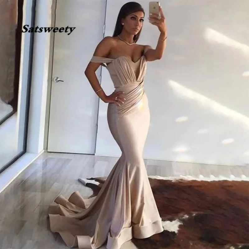 Satsweety атласные элегантные вечерние платья цвета шампанского 2022 русалки простые сексуальные для женщин вечерние платья для выпускного