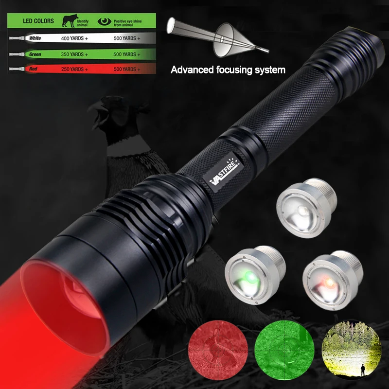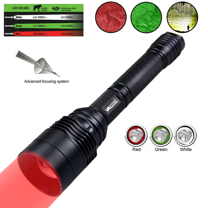 500 ярдов масштабируемый светодиодный тактический фонарь, цвета: красный, зеленый фонарь лампа Перезаряжаемые охота и Рыбалка фонарик + 18650 + Зарядное устройство + крепление