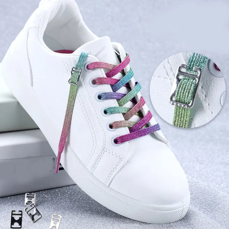 Шнурки эластичные без завязывания, разноцветные, для обуви, для несекса, блестящие, для ленивых, для детей и взрослых, аксессуары для обуви, 100 см