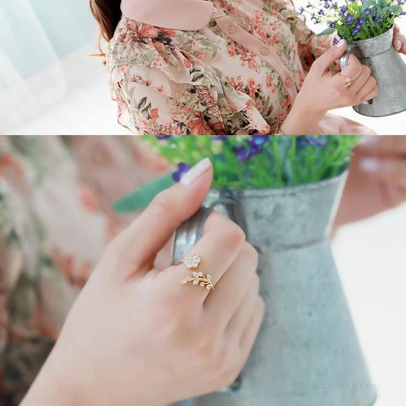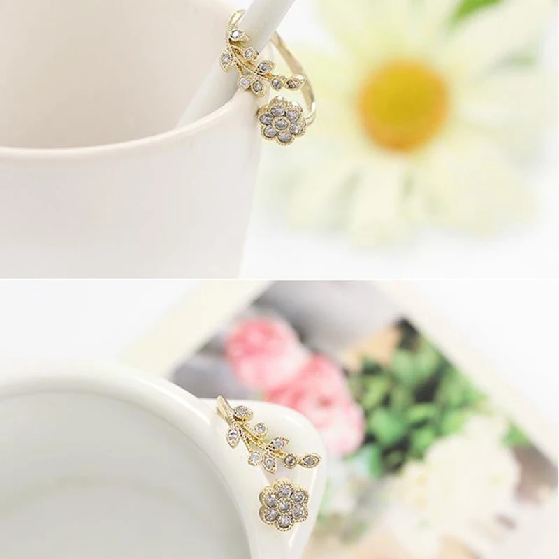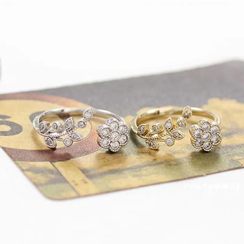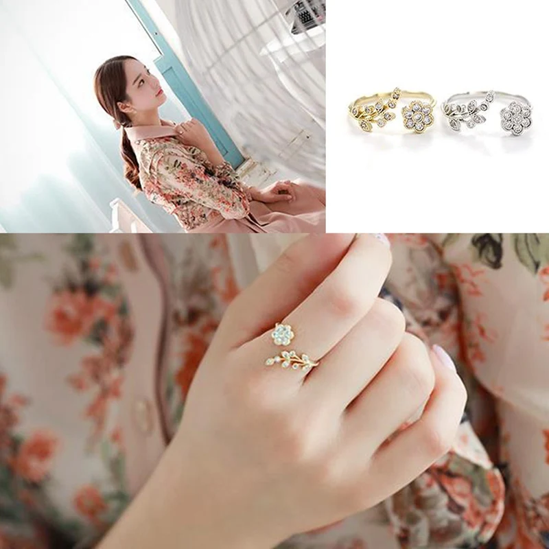 Корейский витой цветок Стразы Открытое кольцо розовое милое цветное кольцо на палец для женщин эффектное регулируемое кольцо оптовая продажа
