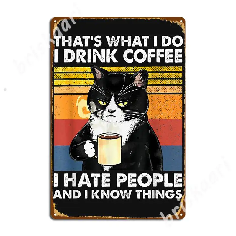 Забавная кошка, я пью кофе, я люблю людей и знаю свои вещи, искусственный кинотеатр, гараж, домашние жестяные плакаты с вывесками
