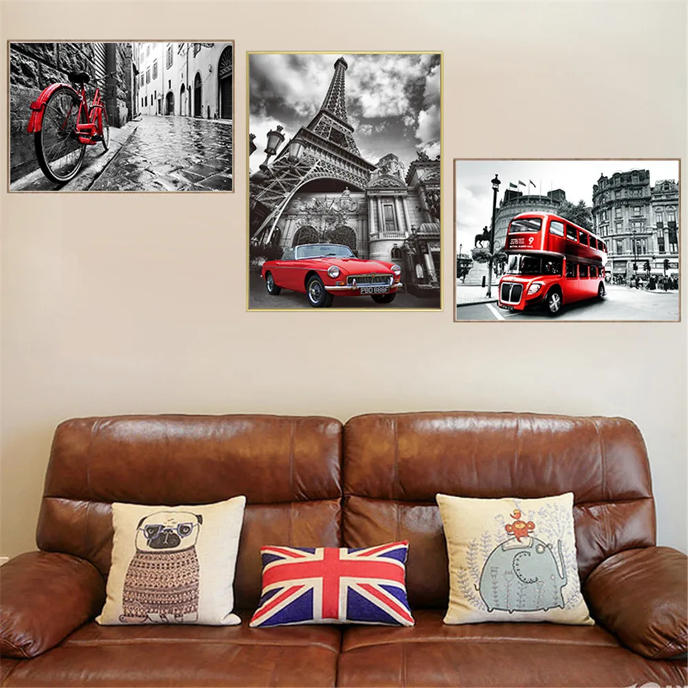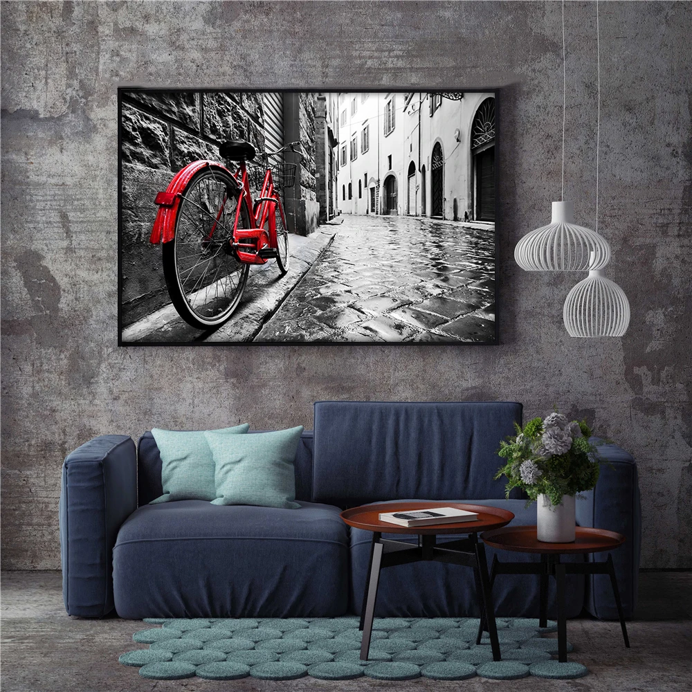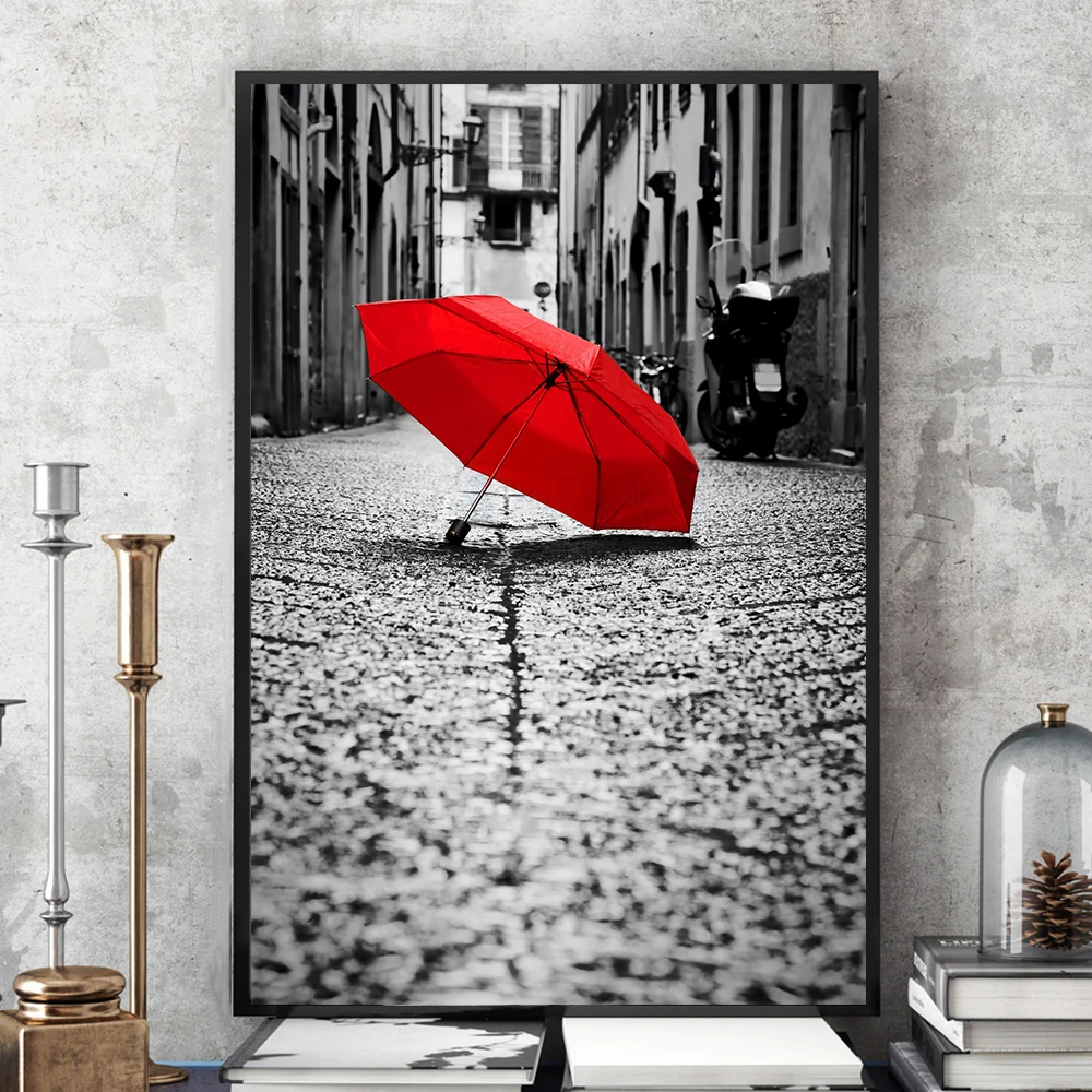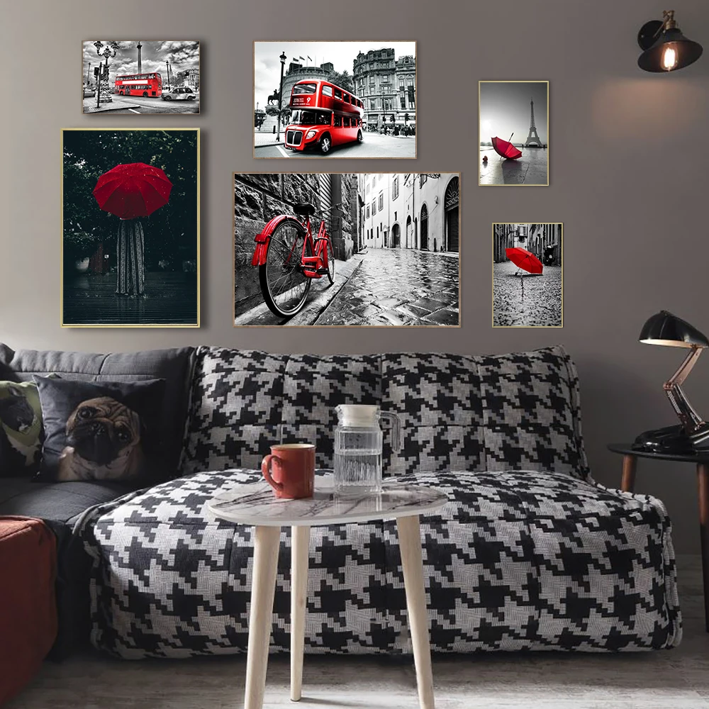 Красный зонт, черные и белые плакаты и фотообои, красная шина, автомобиль, велосипед, художественные настенные картины для гостиной, кабинета, Декор