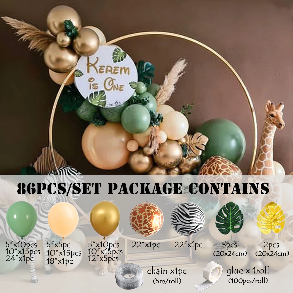 Надувные шары зеленого цвета, 86 шт., комплект гирлянды, цепочка для арки, джунглей, животных, сафари, принадлежности для тематической вечеринки, декор для дня рождения