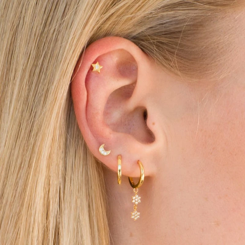 Автоклав 925 Стерлинговое Серебро Циркон Серьга-гвоздик для пирсинг...