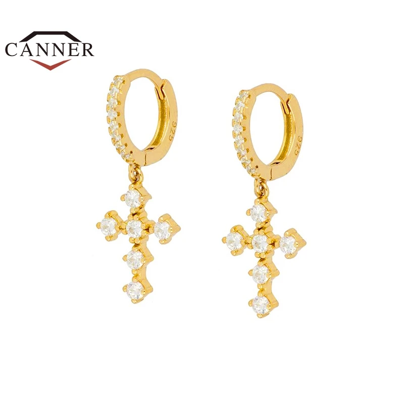 Серьги-подвески женские из серебра 925 пробы с подвеской в виде креста