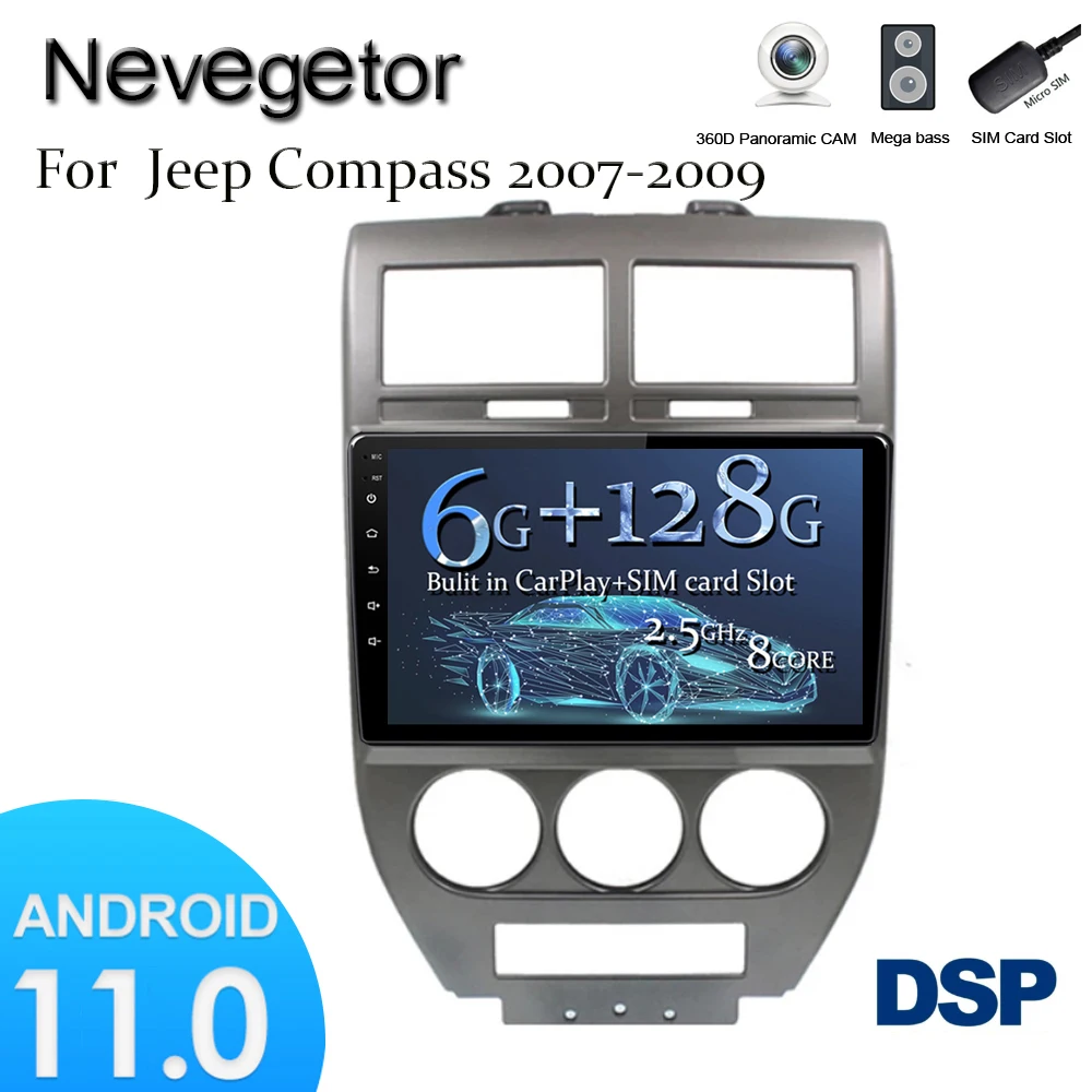 Автомобильное радио, мультимедийный видеоплеер, GPS-навигатор IPS, поддержка 4G + WiFi, DAB, OBD, для Jeep Compass MK 2006-2010 DSP