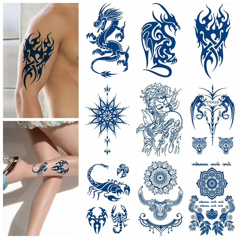 Травяной сок Татуировка мужчин с длинным рукавом-термин минималистский Uno Водонепроницаемый Дракон Скорпион аниме тело временные наклейки для Для женщин
