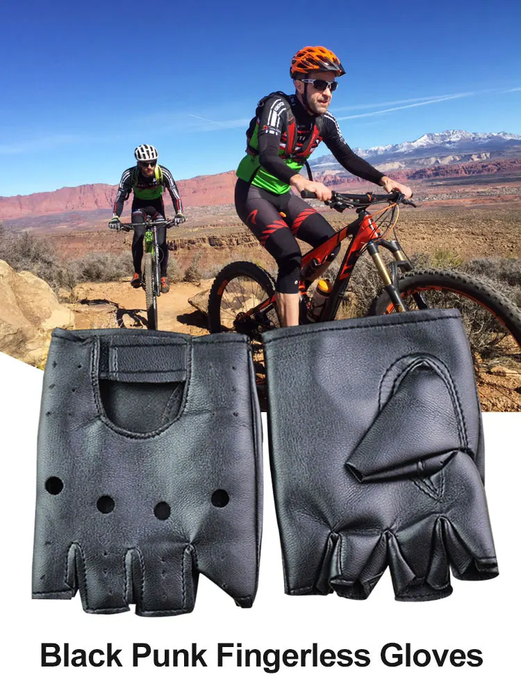 Перчатки с открытыми пальцами для велоспорта, Нескользящие перчатки из искусственной кожи без пальцев, дышащие перчатки панк-перчатки для велоспорта, фитнеса, унисекс, 1 пара