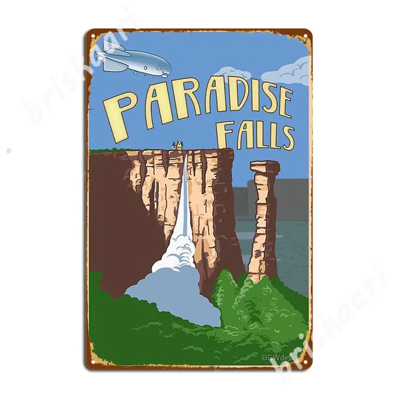 Дорожный плакат Paradise Falls, металлические знаки, настенная пещера, Настенный декор для кинотеатра, индивидуальные жестяные плакаты