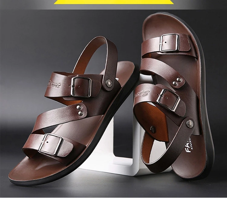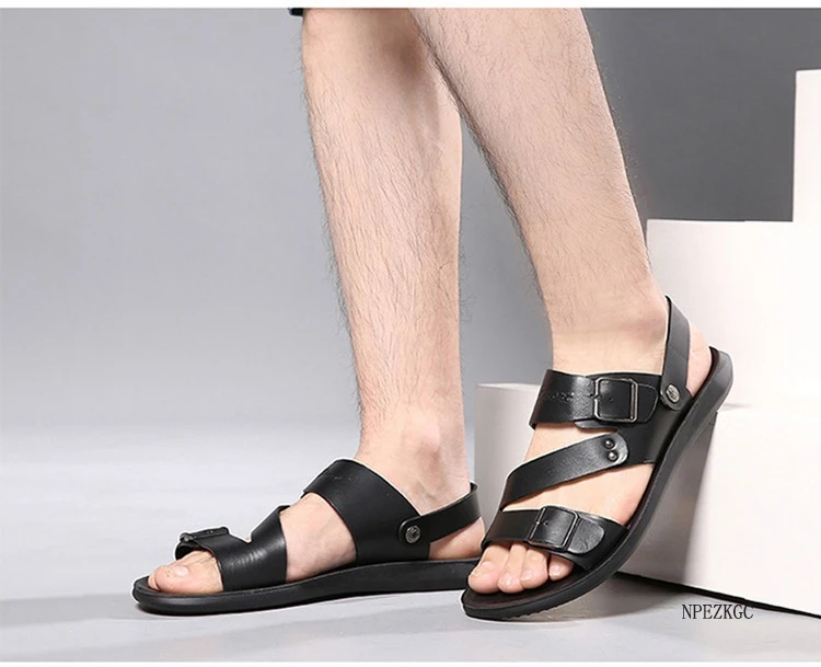 Сандалии из натуральной кожи; Мужская обувь; Брендовая мужская повседневная обувь; Мужские шлепанцы; Летние пляжные сандалии для мужчин комфортные шлепанцы