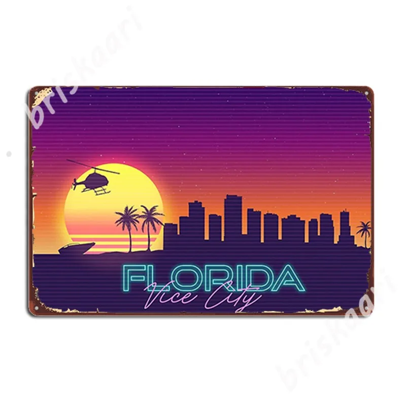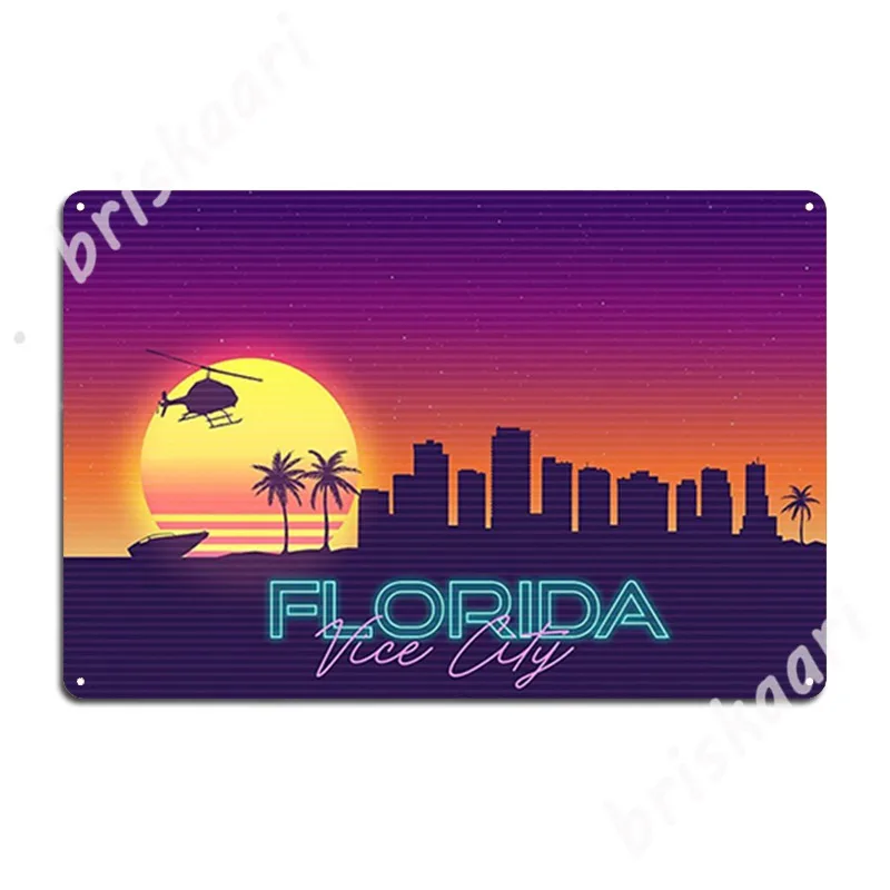 Тиски-Сити, Флорида, горизонтальный пейзаж, пейзаж, Syntwhave, металлические вывески, настенные плакаты для дома, паба, Жестяная Табличка с надписью