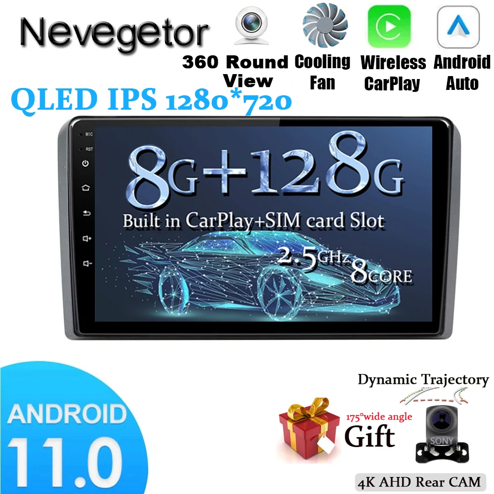 Автомагнитола 8 ГБ + 128 ГБ DSP Android 11, мультимедийный проигрыватель с GPS и RDS для Audi A3 8P S3 2003 2004 2005-2012, 2din, автомагнитола на Android, без DVD