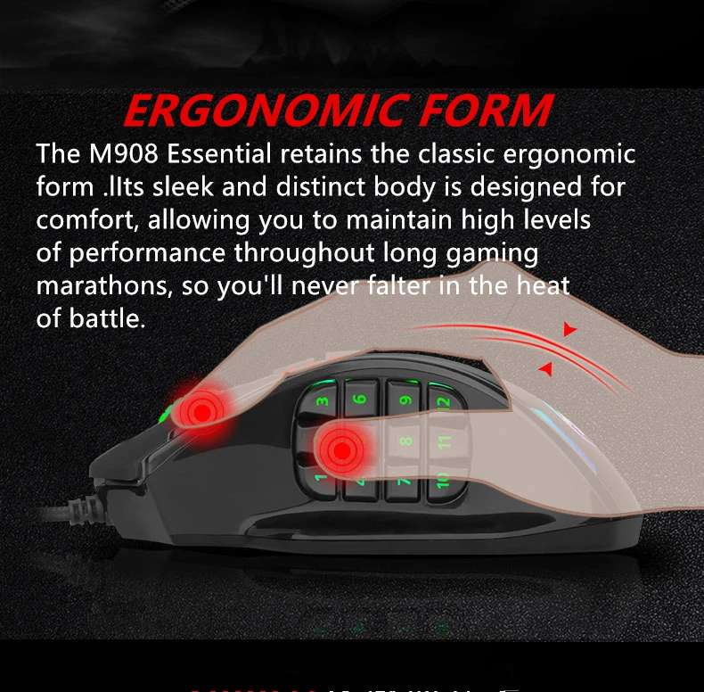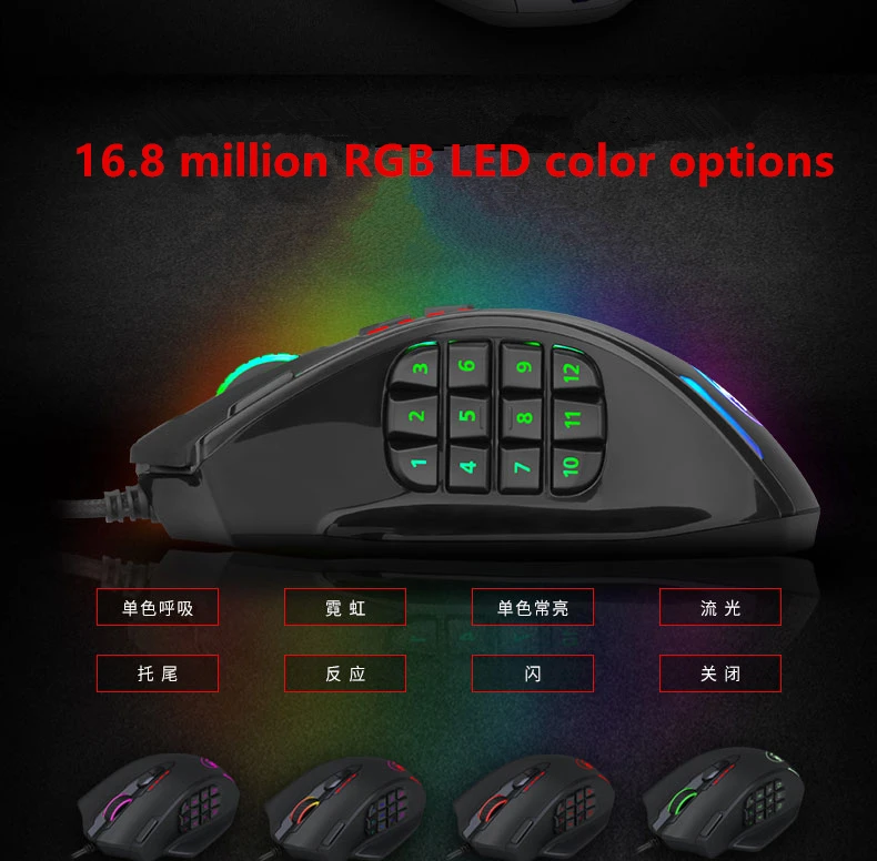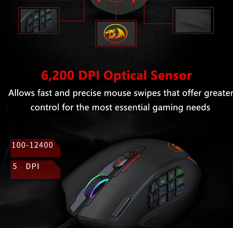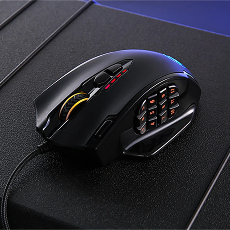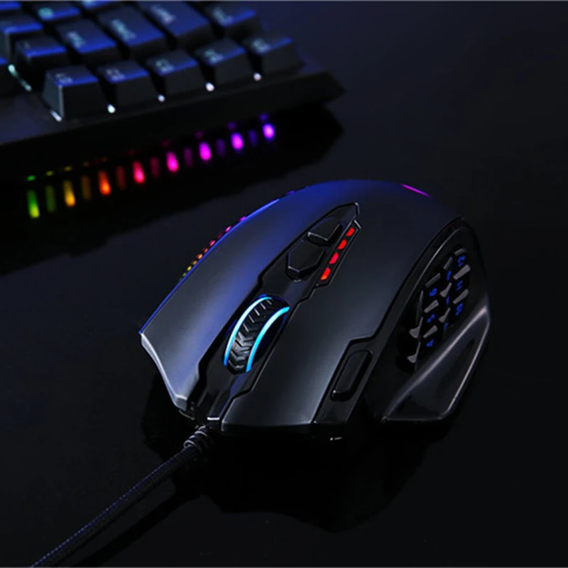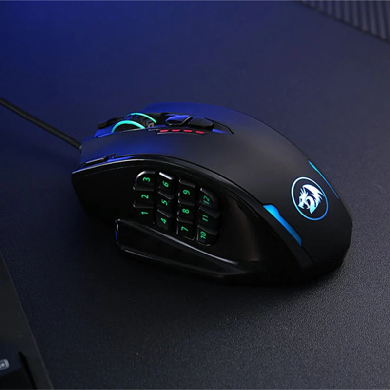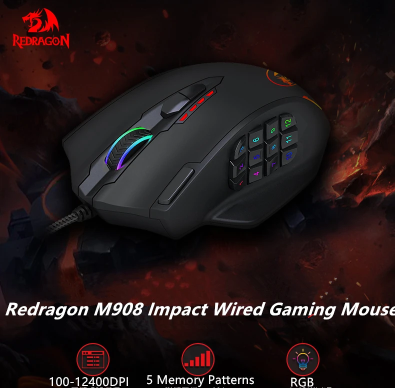 Проводная лазерная игровая мышь Redragon IMPACT M908, 12400 DPI, 19 программируемых кнопок светодиодный, высокая точность для MMO