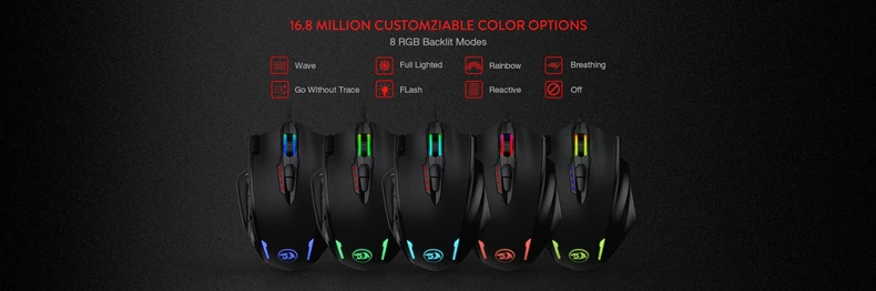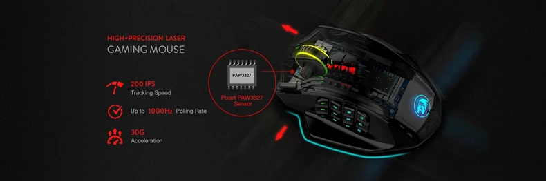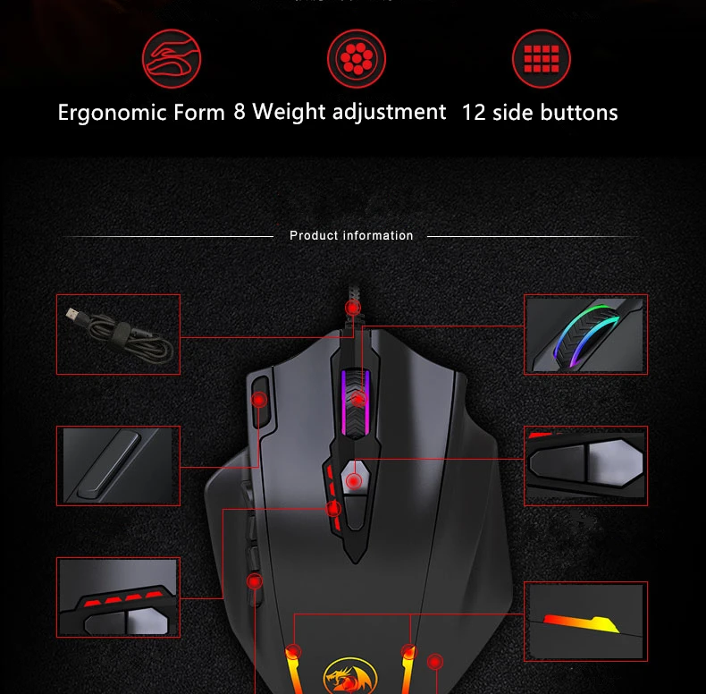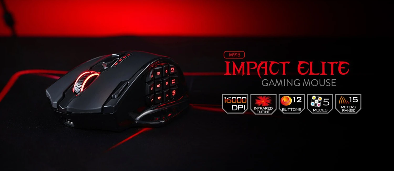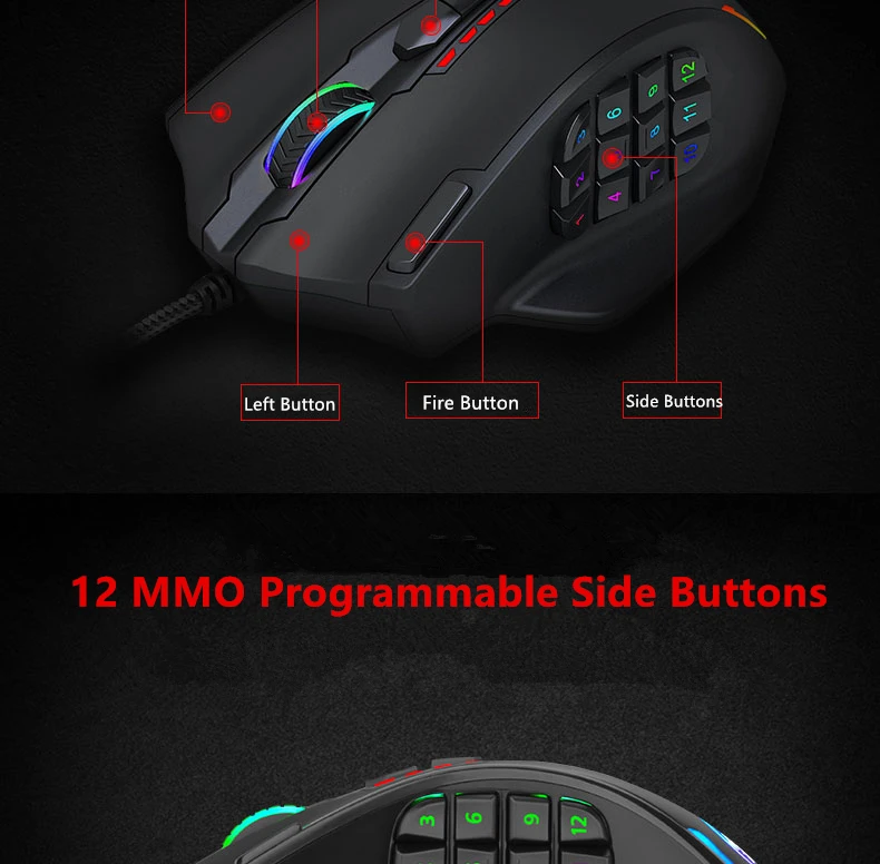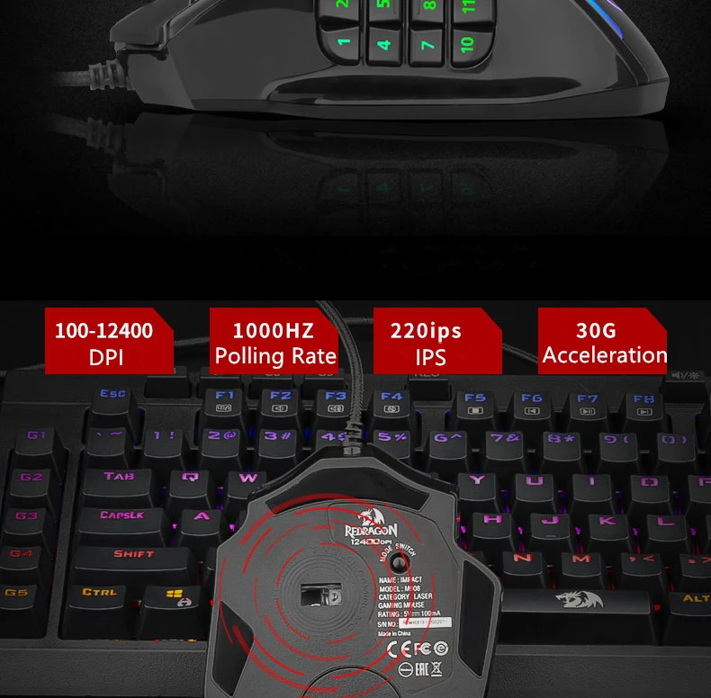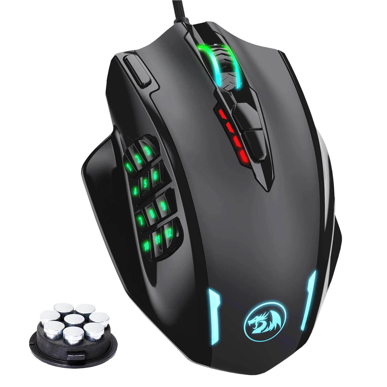 Проводная лазерная игровая мышь Redragon IMPACT M908, 12400 DPI, 19 программируемых кнопок светодиодный, высокая точность для MMO