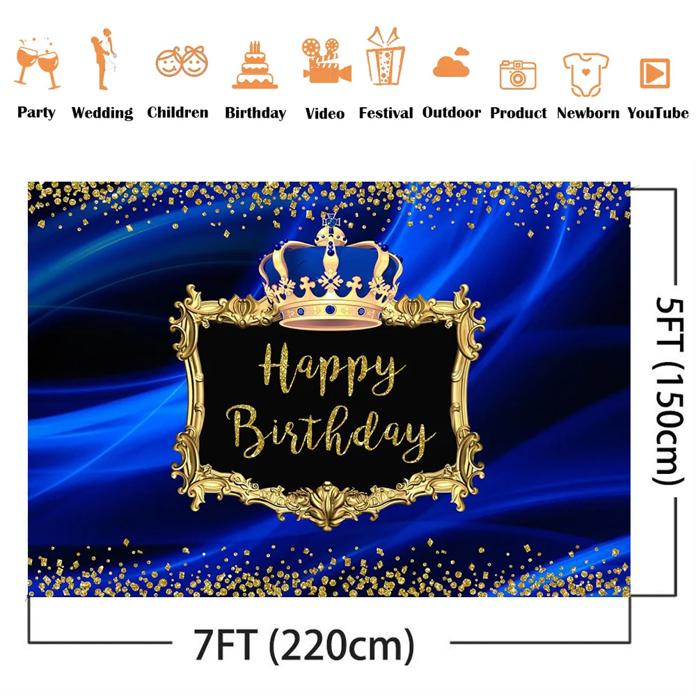 Королевского голубого цвета для девочек с днем рождения фон Золотая Корона в блестящий горошек с рисунком для новорожденных Prince и Princess на день рождения вечерние фон реквизит