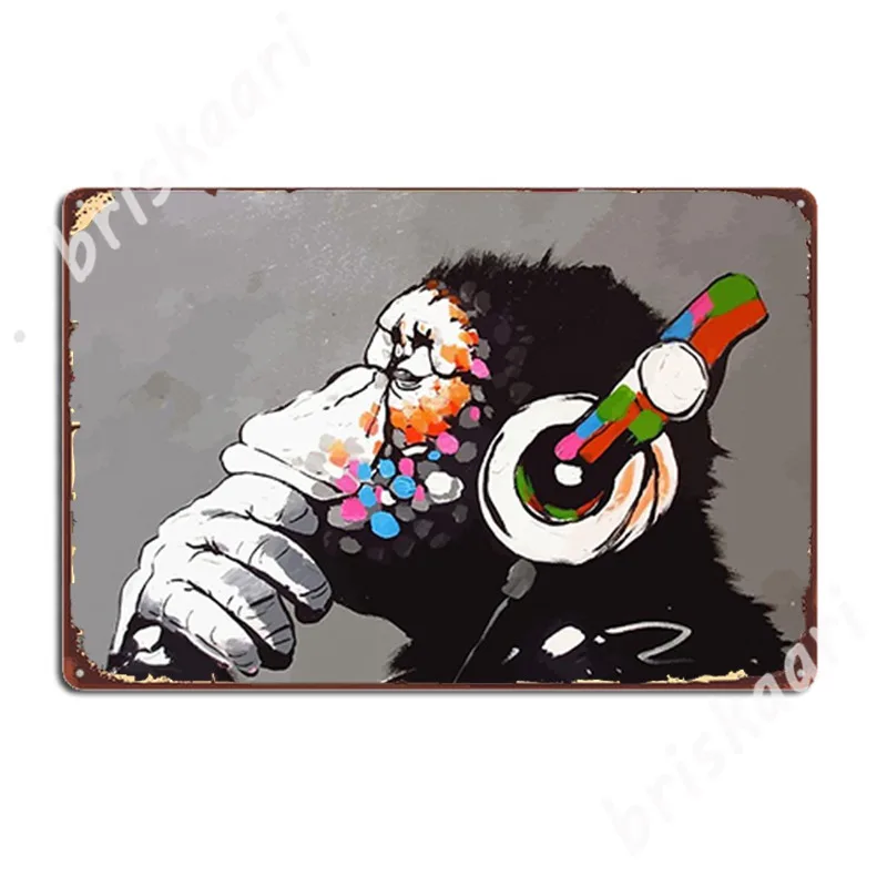 Banksy Dj обезьяна истончик с наушниками металлические знаки паб кухня классические пластины жестяные знаки постеры
