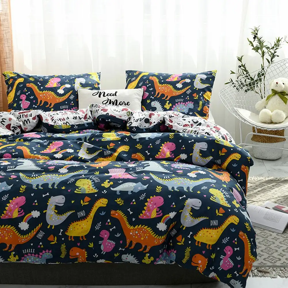 Детский комплект с пододеяльником, милые постельные принадлежности, одеяла, наволочки с наволочками, мультяшный динозавр, мягкий домашний текстиль для мальчиков, двойной, Королевский, большой размер