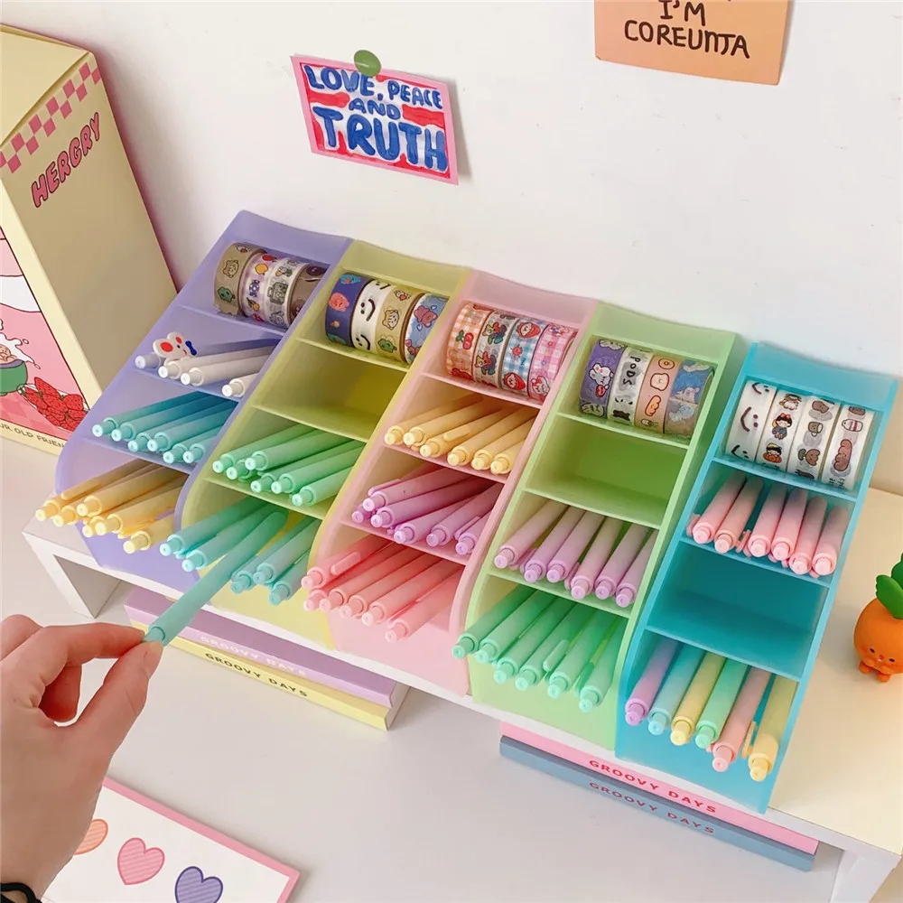 Настольный держатель для ручек ярких цветов, 4 ячейки, милые маленькие и большие кисти для макияжа, органайзер для хранения, школьные канцелярские принадлежности