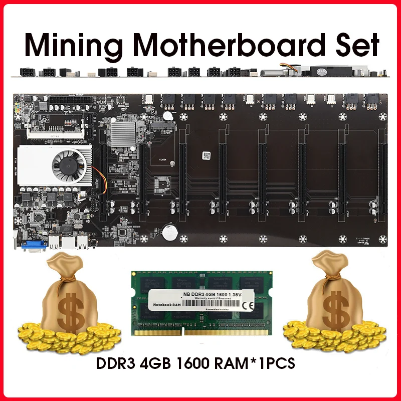 Материнская плата JINGSHA для майнинга с 1 шт. DDR3 4 ГБ ОЗУ ЦП набор 8 слотов для видеокарты встроенный VGA